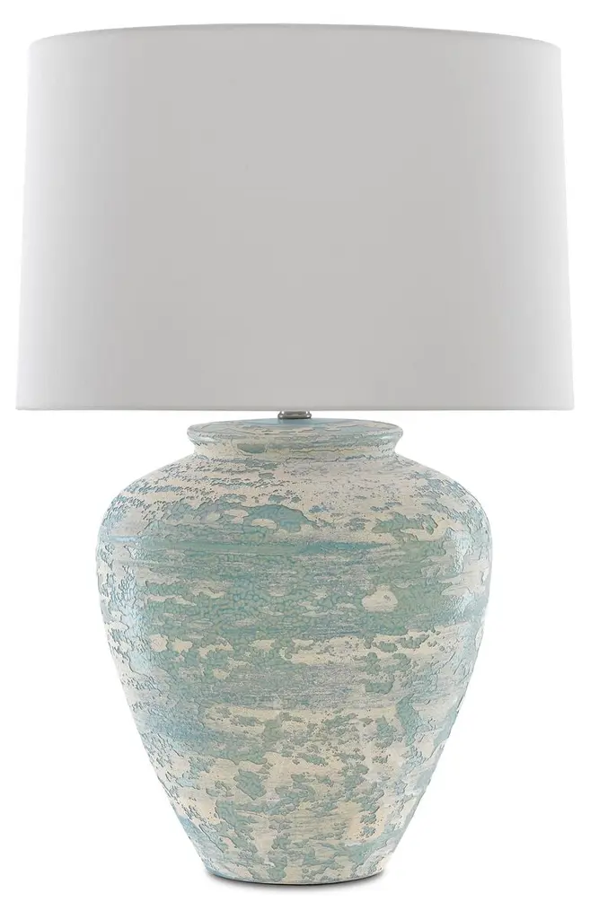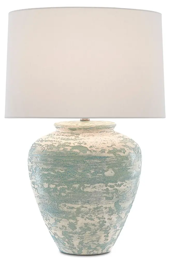 With its ginger-jar shape and a texture resembling that of a recently unearthed artifact, this table lamp will bring time-honored elegance to a room.