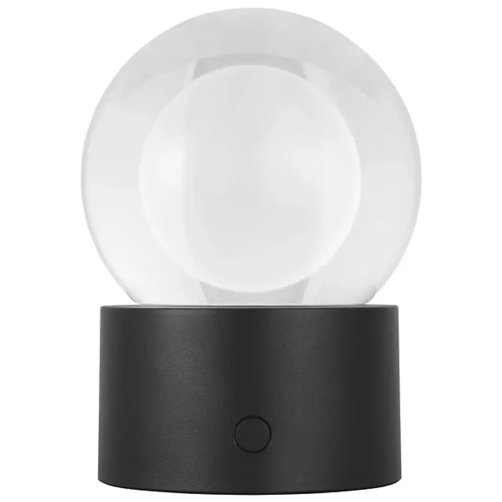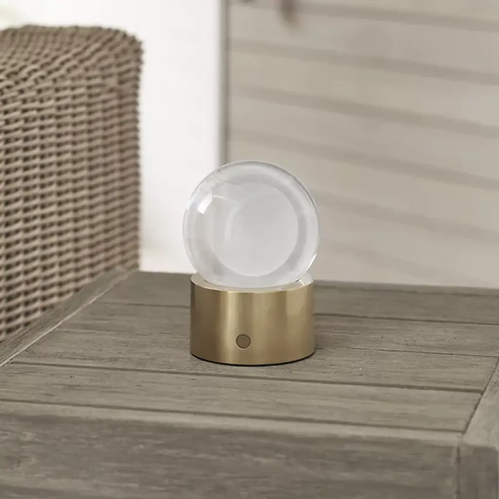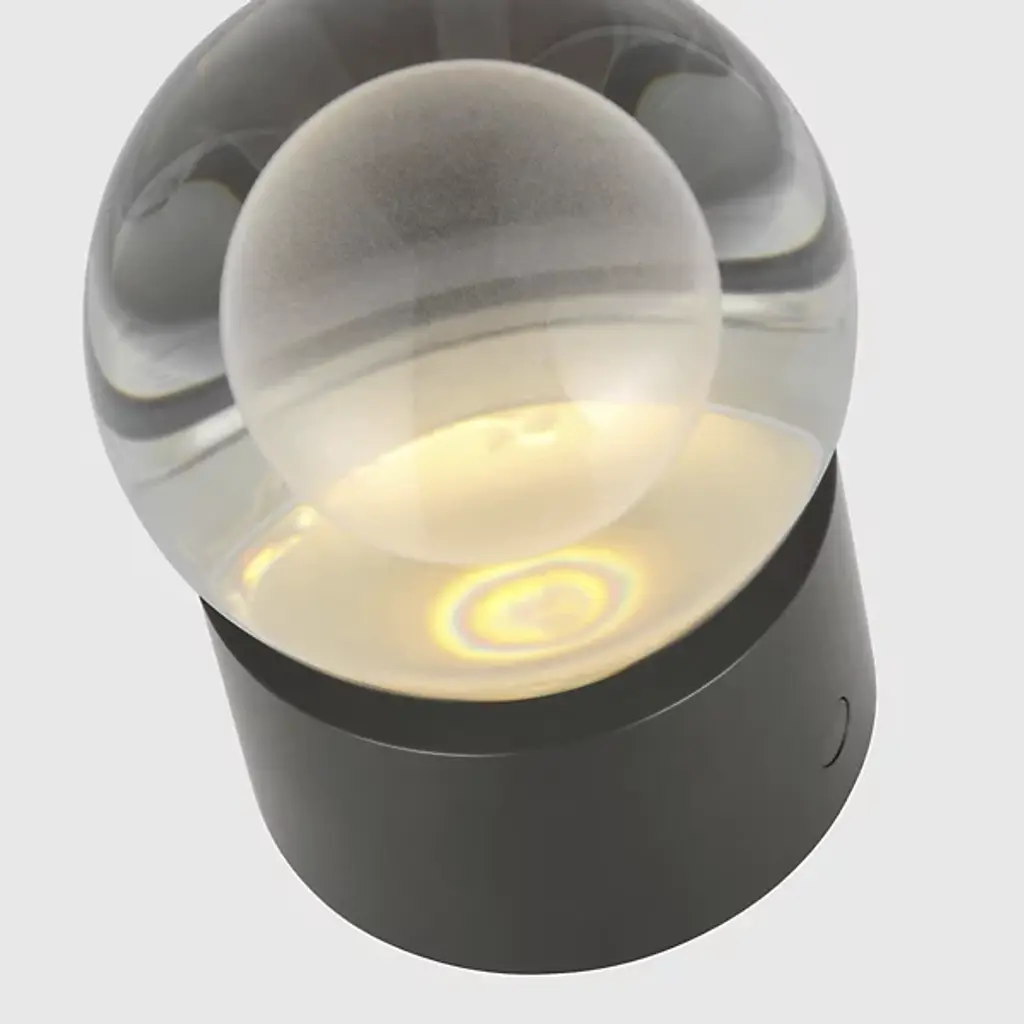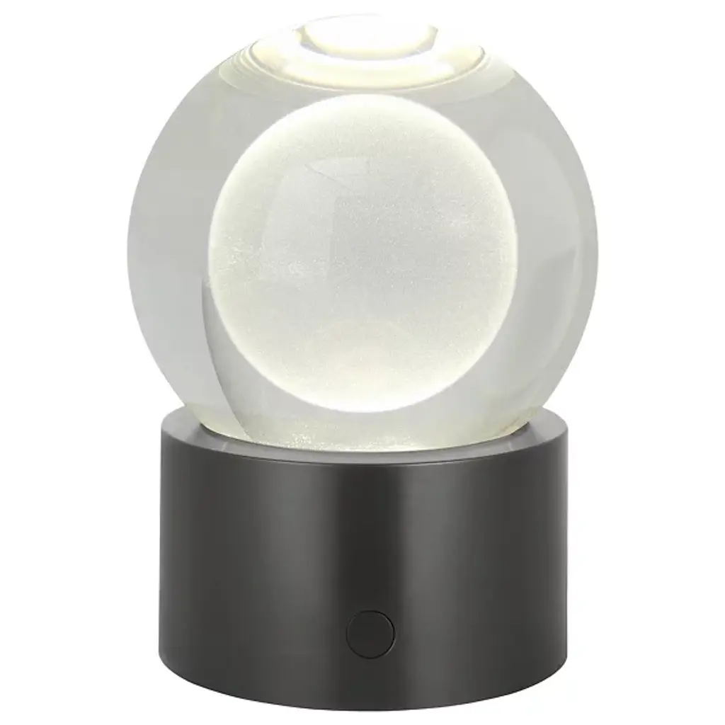 Behold the Mina Rechargeable LED Table Lamp from Visual Comfort Modern, a creation of Sean Lavin that exudes timeless elegance. Its exquisite sphere, crafted from pure optic crystal, rests gracefully upon a sleek metal base. Enhanced with laser-etched detailing and powered by a concealed LED, this lamp transforms into a radiant masterpiece when lit, casting a mesmerizing glow. Even when unilluminated, its modern design adds a touch of sophistication to any space, making it a stunning addition to contemporary decor.