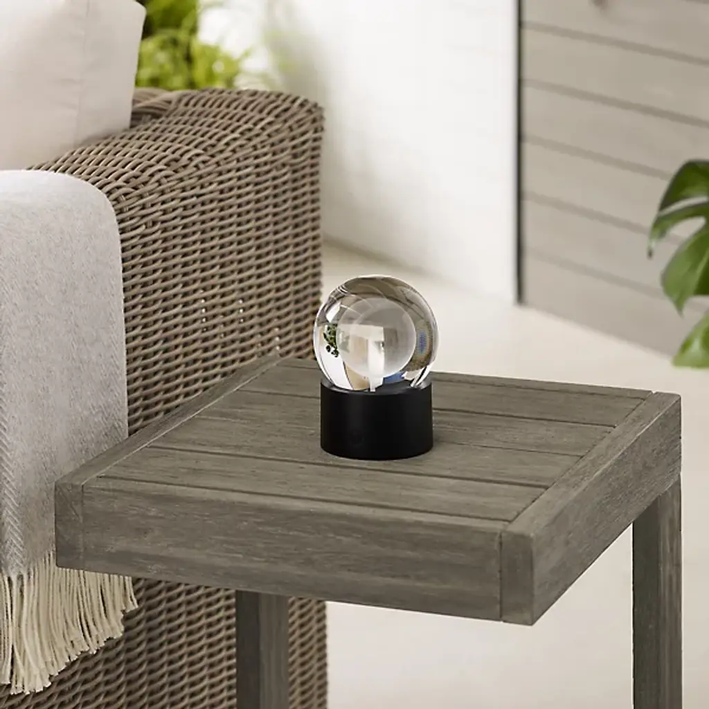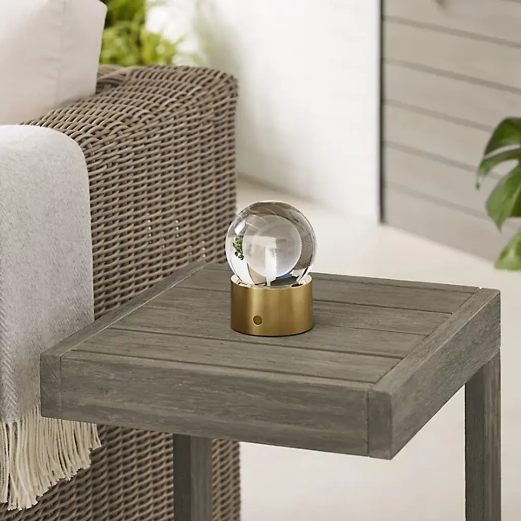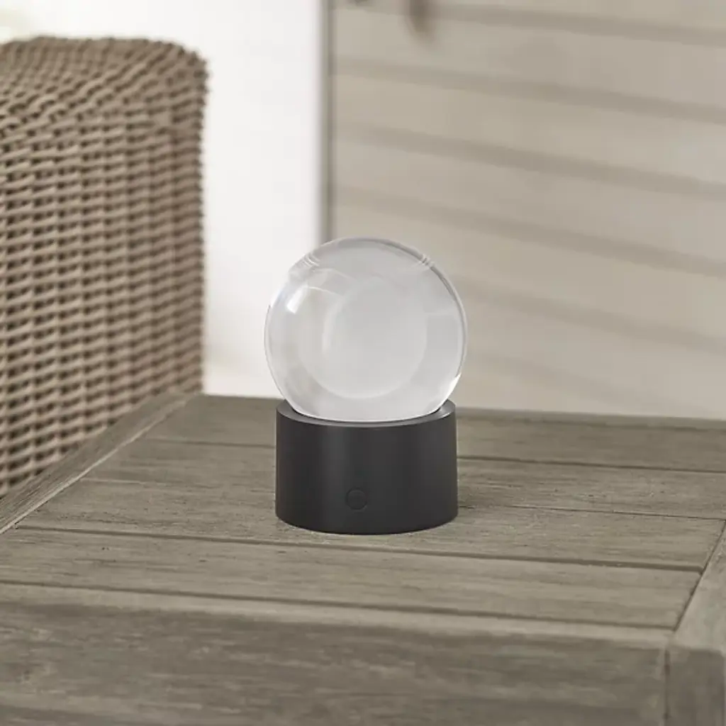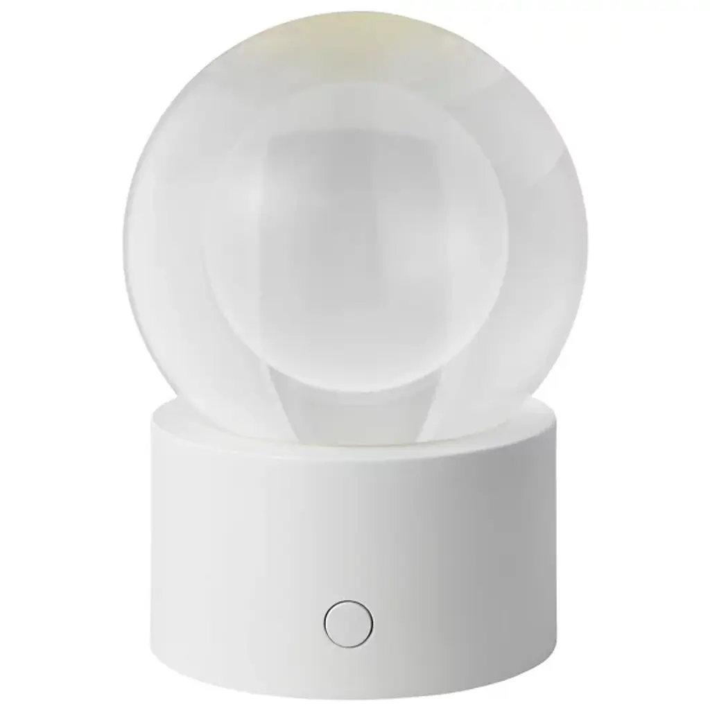 Behold the Mina Rechargeable LED Table Lamp from Visual Comfort Modern, a creation of Sean Lavin that exudes timeless elegance. Its exquisite sphere, crafted from pure optic crystal, rests gracefully upon a sleek metal base. Enhanced with laser-etched detailing and powered by a concealed LED, this lamp transforms into a radiant masterpiece when lit, casting a mesmerizing glow. Even when unilluminated, its modern design adds a touch of sophistication to any space, making it a stunning addition to contemporary decor.