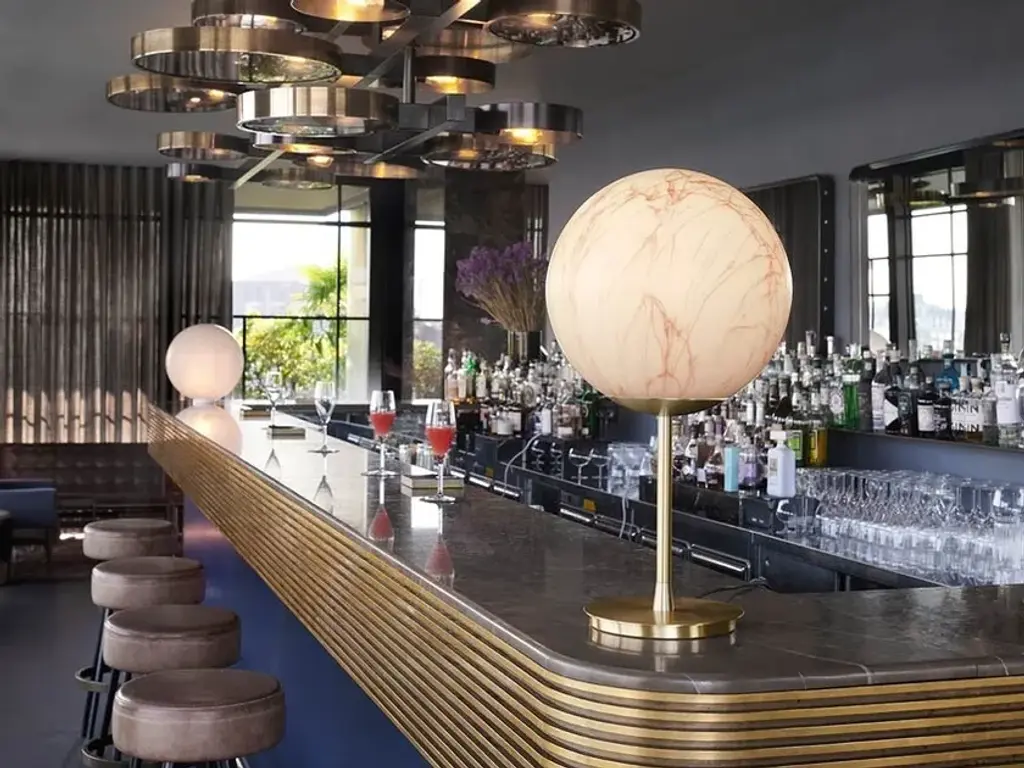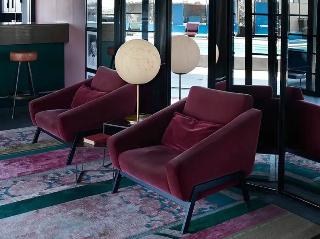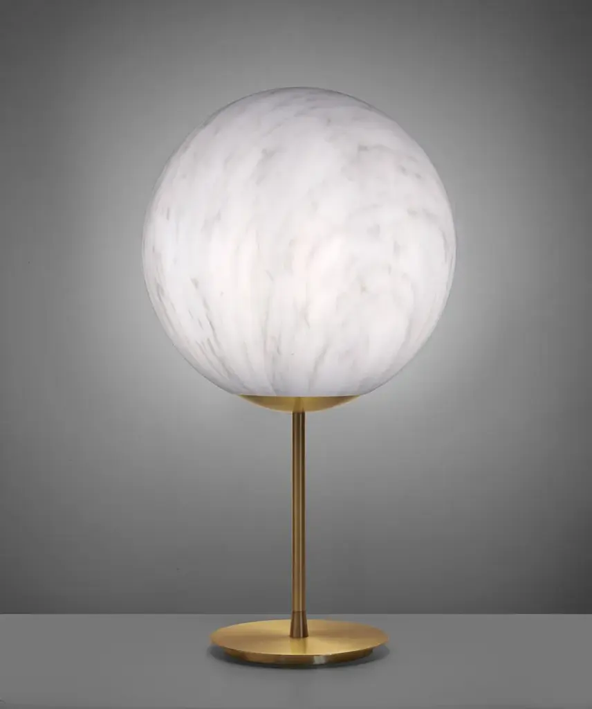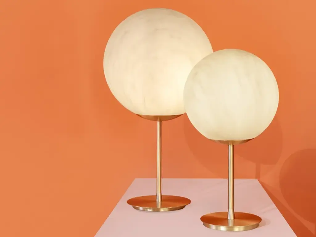 The spherical shape of Mineral Stand lights up every kind of indoor settings with essentiality and elegance. The particular Carrara marble finishing - with red or grey veins - makes the lamp refine and timeless. The brass stem makes both the table and the floor version more precious. Mineral Stand enriches the Mineral collection, with Mineral hanging lamps and Mineral table lamps.Finishes: white marble effect with gray or red veinsBase in satin brass1 x 10W - A65 / E27Fabric cable, burgundy