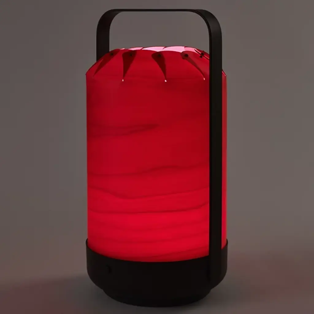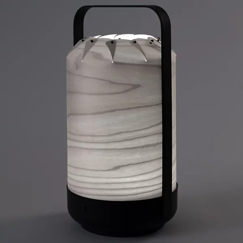 Lighting that's so cute and colorful, you'll want to take it with you wherever you go. The shape and portability of the Mini Chou Portable Cordless LED Lamp by LZF was inspired by Japanese paper lanterns (or, "chouchin"). Here, the paper is replaced by translucent natural Wood Veneer, a material that's thin enough to be manipulated like paper, but with all the character and texture that comes from real wood. When its battery is fully charged using the included USB charger, this petite lantern can glow for up to 7 hours at full power, or longer when the LEDs are dimmed.