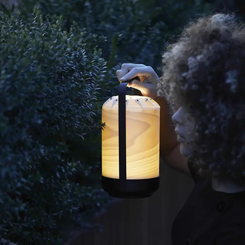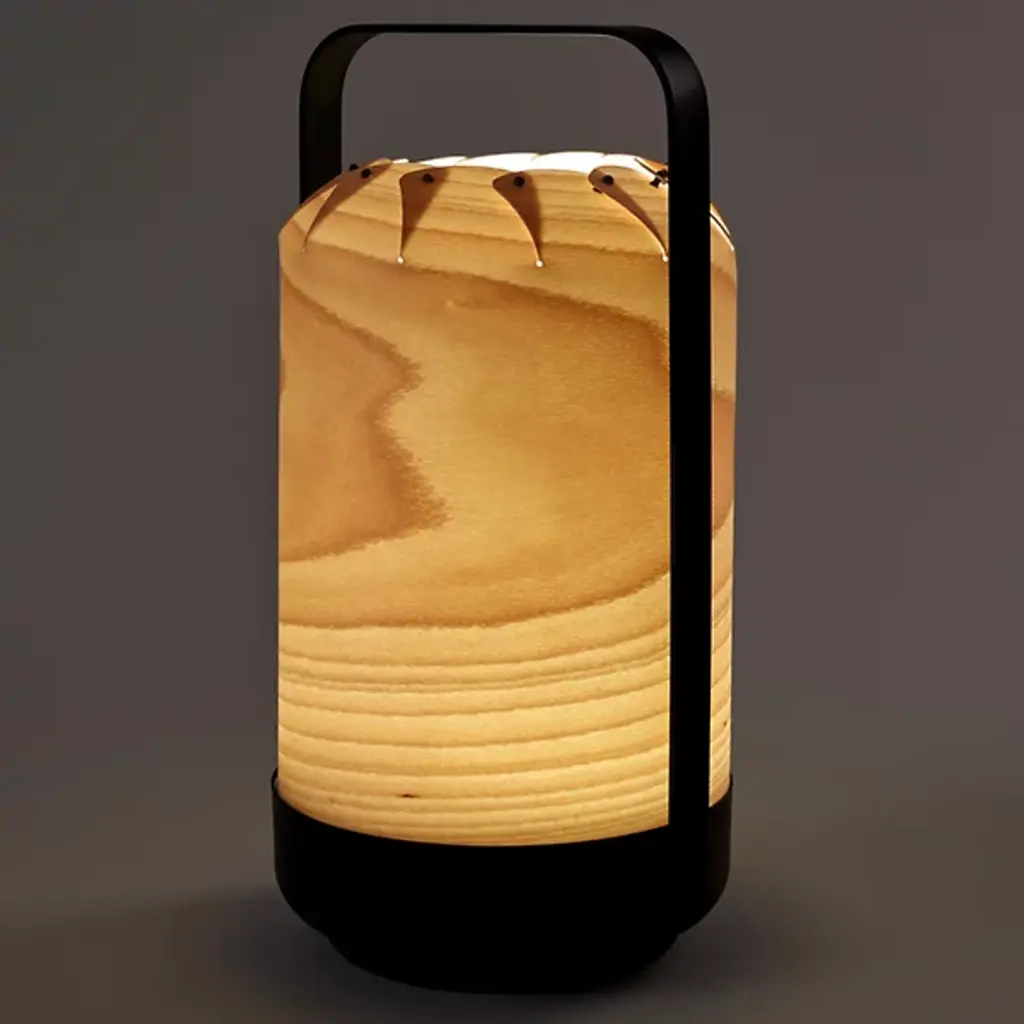 Lighting that's so cute and colorful, you'll want to take it with you wherever you go. The shape and portability of the Mini Chou Portable Cordless LED Lamp by LZF was inspired by Japanese paper lanterns (or, "chouchin"). Here, the paper is replaced by translucent natural Wood Veneer, a material that's thin enough to be manipulated like paper, but with all the character and texture that comes from real wood. When its battery is fully charged using the included USB charger, this petite lantern can glow for up to 7 hours at full power, or longer when the LEDs are dimmed.