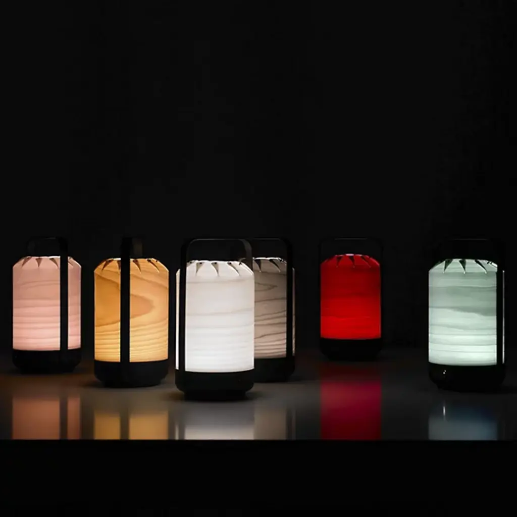 Lighting that's so cute and colorful, you'll want to take it with you wherever you go. The shape and portability of the Mini Chou Portable Cordless LED Lamp by LZF was inspired by Japanese paper lanterns (or, "chouchin"). Here, the paper is replaced by translucent natural Wood Veneer, a material that's thin enough to be manipulated like paper, but with all the character and texture that comes from real wood. When its battery is fully charged using the included USB charger, this petite lantern can glow for up to 7 hours at full power, or longer when the LEDs are dimmed.
