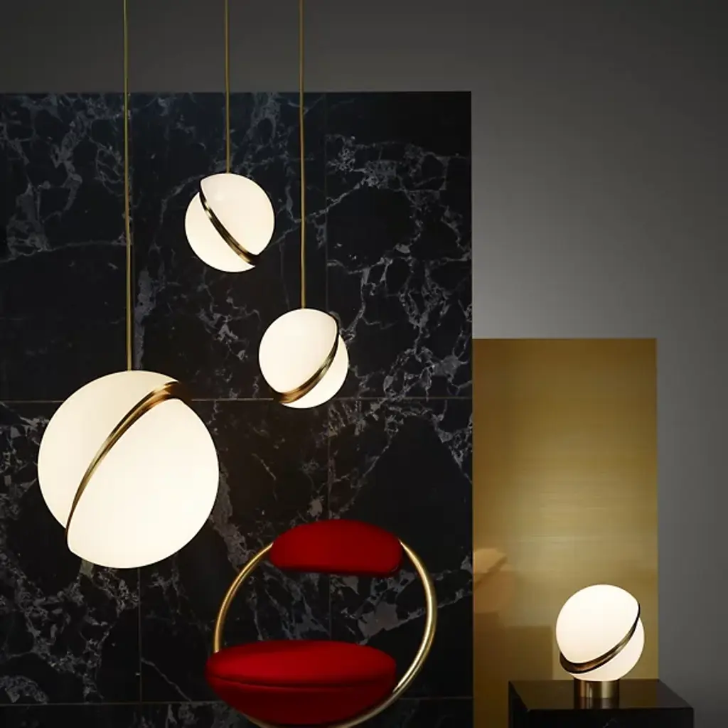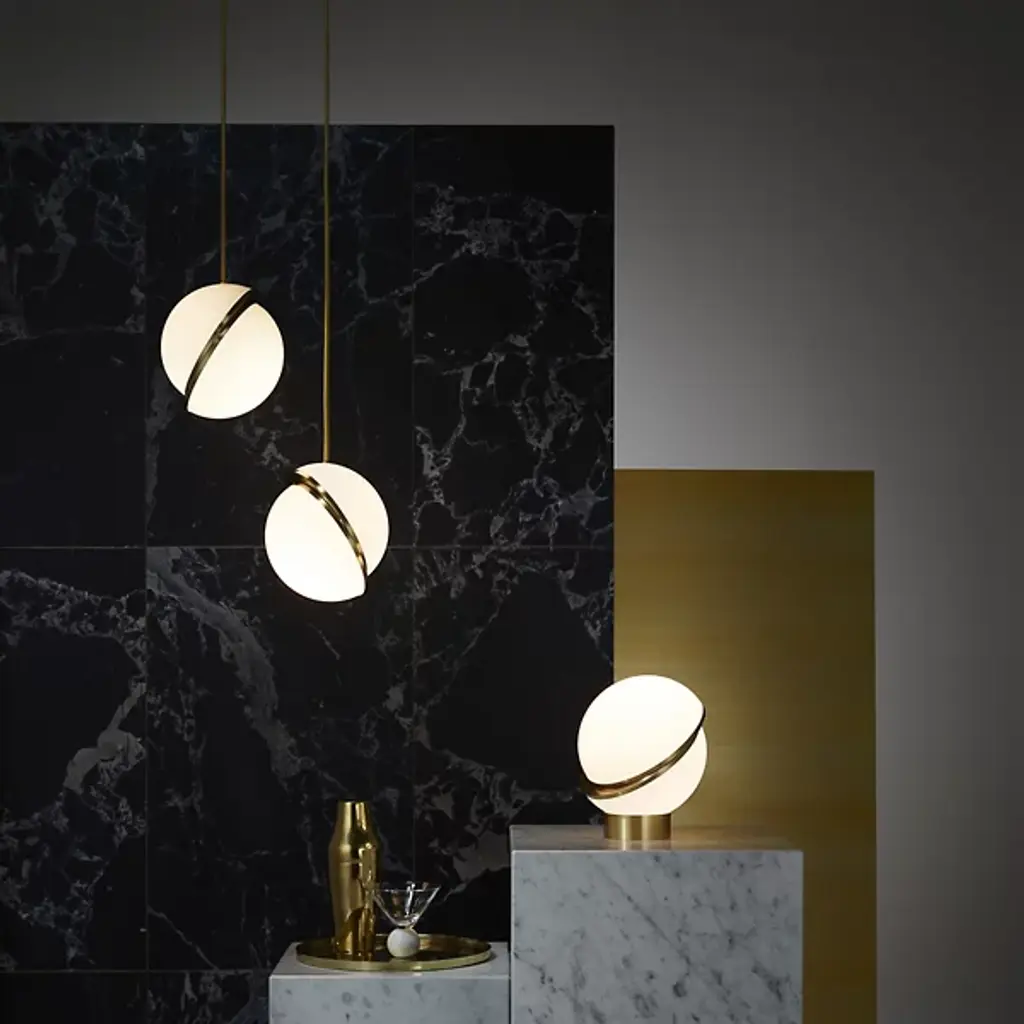 Filling one up with a sense of wonder and curiosity with or without the lights on. The Mini Crescent Table Lamp from Lee Broom draws the eyes with a sense of movement defined by the interaction of solid and opaque finishes. Designer Lee Broom creates pieces with a signature mix of classicism and modernity. The table lamp presents itself with a sculptural quality. Solid metal trimmings give the piece a sharp silhouette and classic elegance. The shade of split domes charms in its shifting movement that guides the eye at an angle. The opaque domes fill up with a warm, glare-free glow and create a rousing atmosphere.