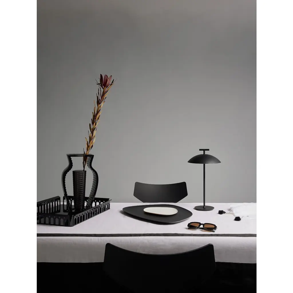 Kartell’s Mini Geen-A Battery is a portable table lamp designed by Ferruccio Laviani. Thanks to its splash-proof IP54 rating, it’s suitable not only for indoor use but also for lighting up a balcony or terrace. It also works beautifully as an atmospheric dining table lamp or a portable reading light at home or in the cottage. Made of powder-coated steel, Mini Geen-A Battery features a classic round shade, a slender stem and a practical carry handle, making it easy to move from room to room or from outdoors to indoors. The portable table lamp is equipped with a dimmable LED module that provides pleasantly even light. Depending on the brightness level, the battery lasts approximately 7–40 hours on a single charge.