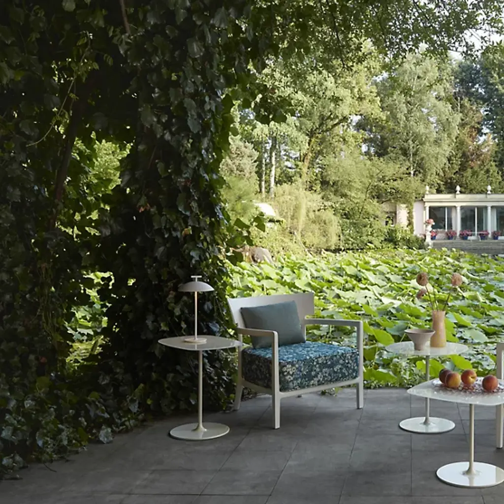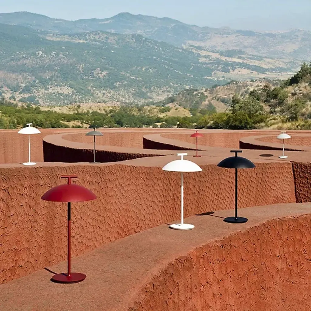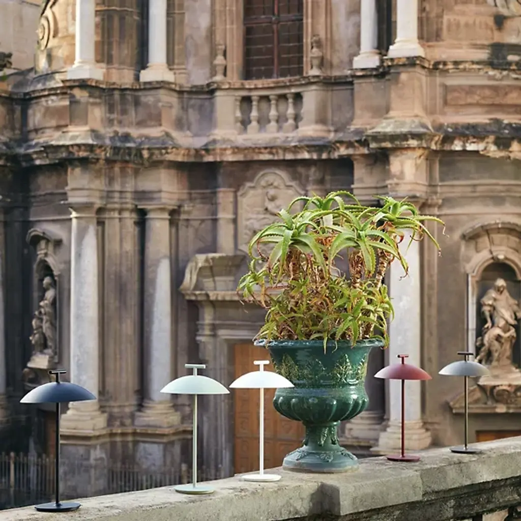 The Mini Geen-A Rechargeable LED Table Lamp is a piece of luminary genius by prodigious designer Ferrucio Laviani for Kartell. Featuring a composition of powder-coated steel metalwork and a bodice that draws from classic mid-mod style, it features rechargeable capability and eco-friendly integrated LED illumination. Made in Italy, a convenient yet stylish handle has been arranged above the shade for portability, while the feature never takes away from a sophisticated aesthetic.