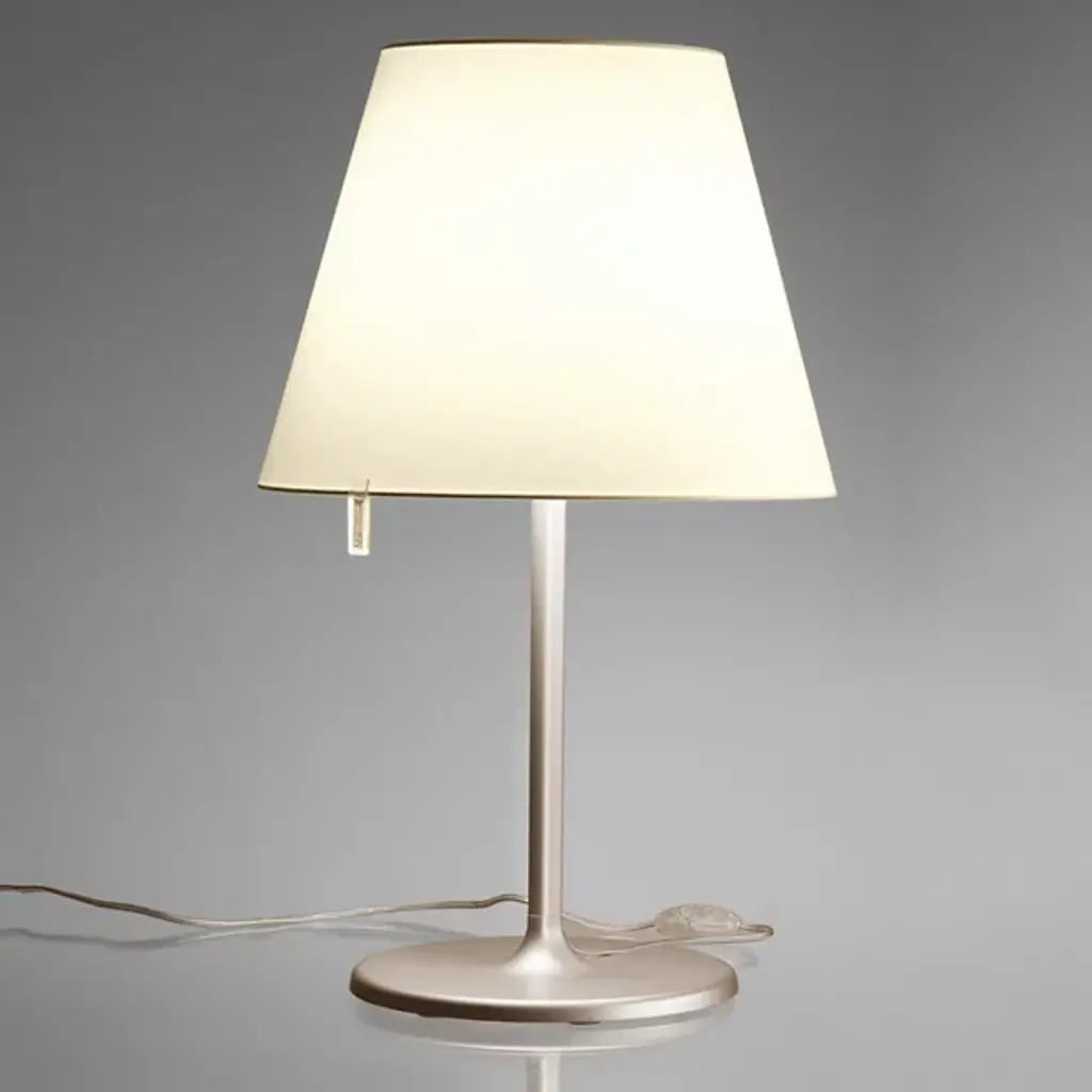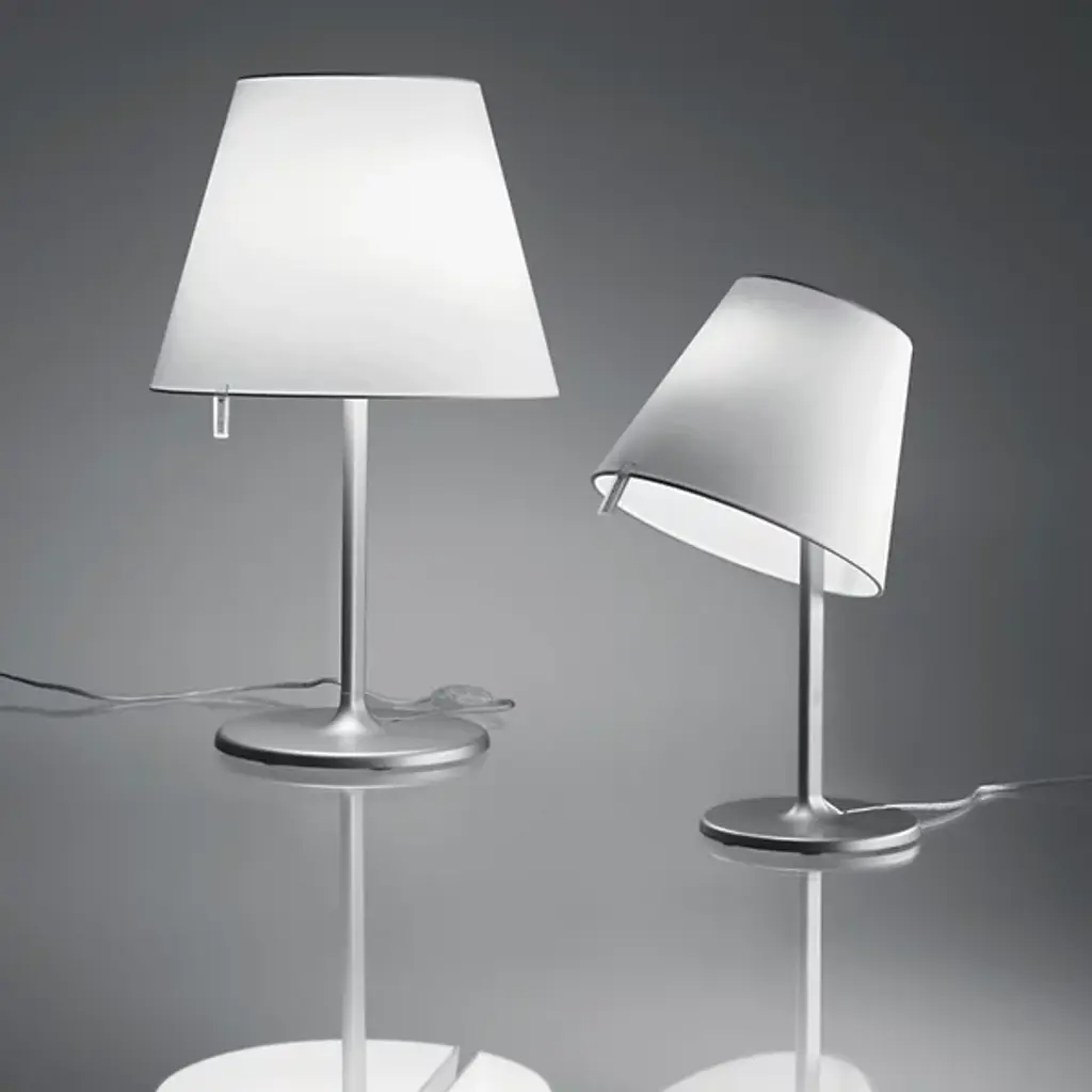 Clever, isn't it? A little table lamp that you can adjust, depending on how much light you need. The shade for the Artemide Mini Melampo Table Lamp can be adjusted 30 degrees upward to provide more direct light. And it can be adjusted back to a full downward position for more indirect light. Note the handy pull tab!