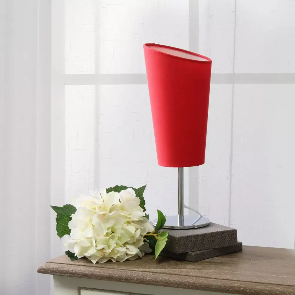 Mini Table Lamp With Angled Fabric Shade Red - Simple Designs: Chrome Base, Bedroom Office Decor, Etl Listed