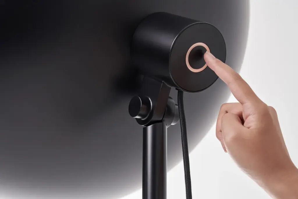 The table-top Minibox is comprised of a metal body, a comfortable handle, and an irreverent luminous eye, which recalls the aesthetics of a miners’ lamp. The magnetic attachment of the head allows the light to be directed, rendering it suitable for any location, even the most unexpected. Metal body and directable head with magnetic coupling. Single emission table lamps for indoor application. The device body is made of metal and features a white finish, processed by means of coating.