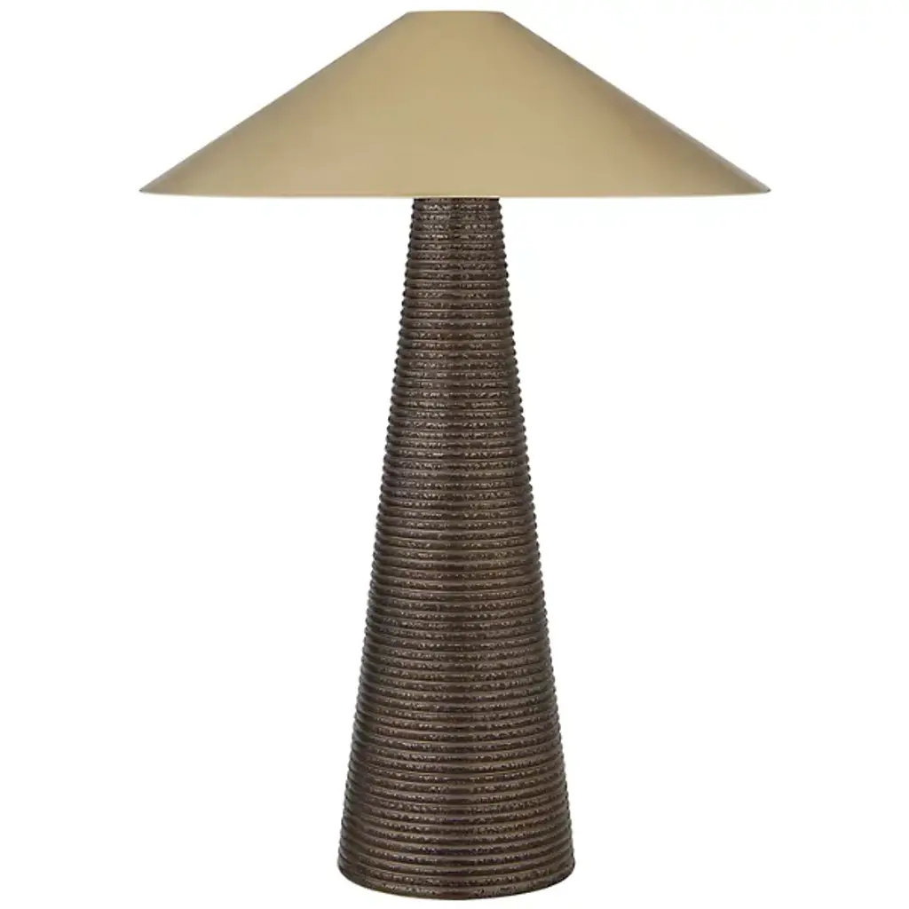 Asian influence. Bring exotic flair to a home décor with the addition of a Miramar Table Lamp by Visual Comfort Signature, formerly known as Visual Comfort, It's a stylish choice for task or ambient lighting with its conical shade and ridged tapered base that gives the piece added texture and depth. Whether placed next to a sofa, in an entryway, dining area or bedroom, this table lamp is what you need to enhance a room with beauty and function.