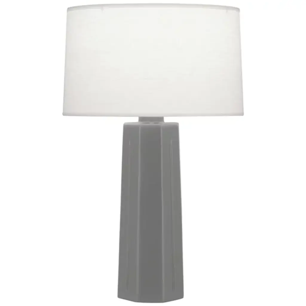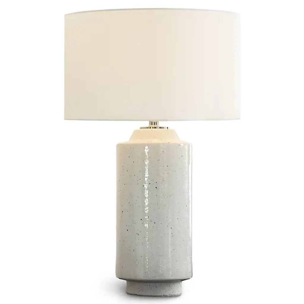 The Mishca Table Lamp from Visual Comfort Signature blends timeless elegance and mid-century modern allure. It’s designed by AERIN. Crafted from exquisite ceramic and brass, Mishca’s base exudes craftsmanship, while the linen shade softens and diffuses light, casting a warm and inviting glow. The lamp features an on/off socket switch for convenient control. This piece finds a balance of minimalism and artistry. The shade and body are similarly contoured for a uniform look.
