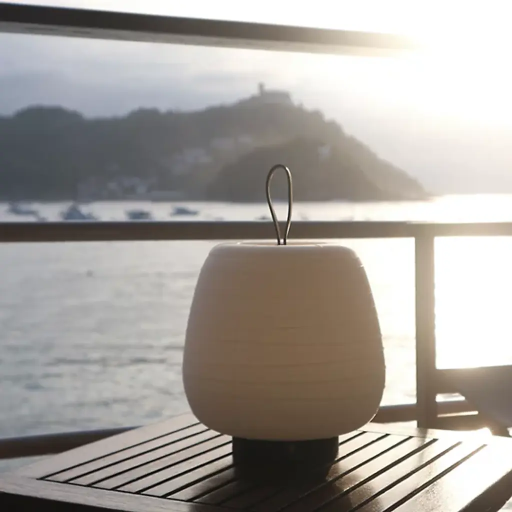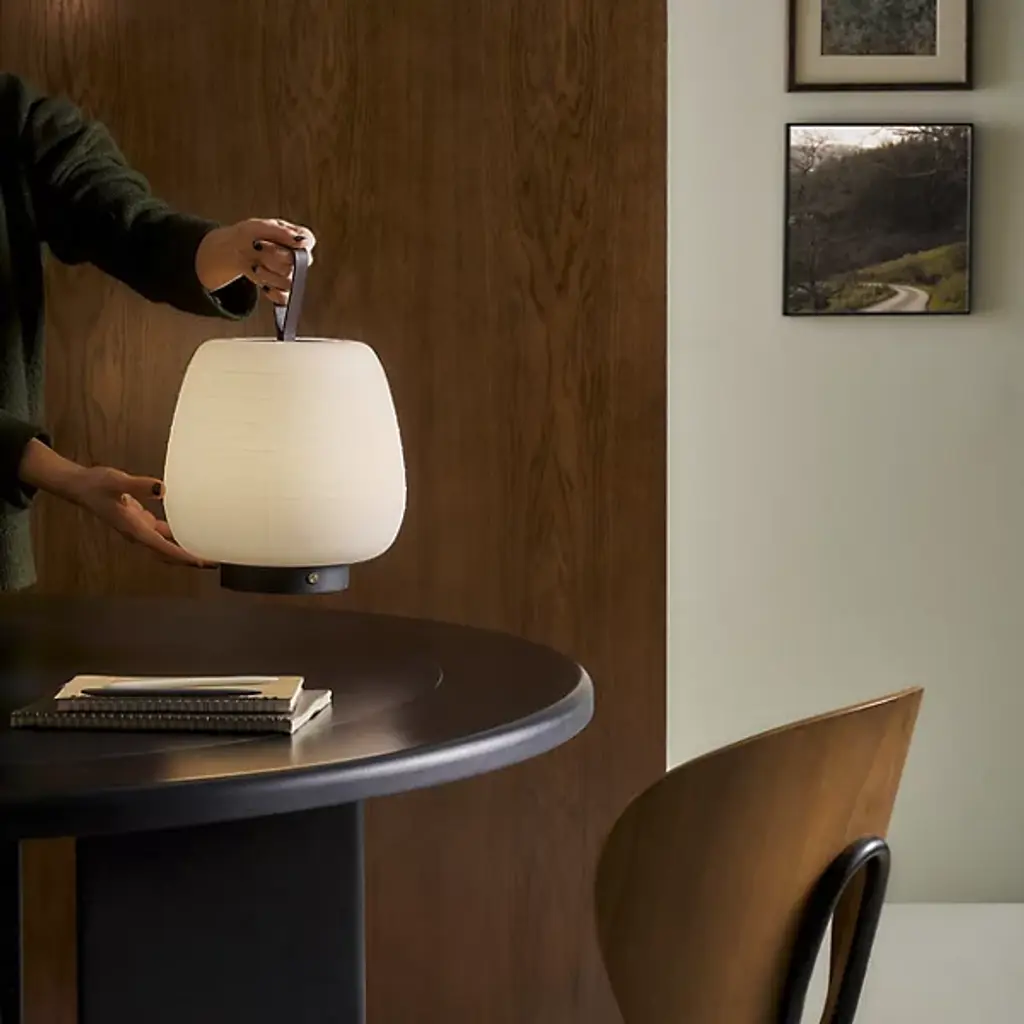 The Misko Camp LED Rechargeable Table Lamp from B.lux travels from one space to the other with ease like a traditional Japanese handheld lantern radiating with intimate light. It’s a Stone Designs piece, illustrating the studio’s simple and natural design aesthetic. A taste for the natural comes across in the piece’s crafted handle. The base mirrors the elegant finish of the handle. This base features a touch dimmer and a USB port that charges the battery for wireless functionality. Capturing the soft, linear texture of Akari lanterns, the blown glass shade charms in its plump form. A warm light covers the glass and glazes the surrounding surfaces in a beautiful aura.