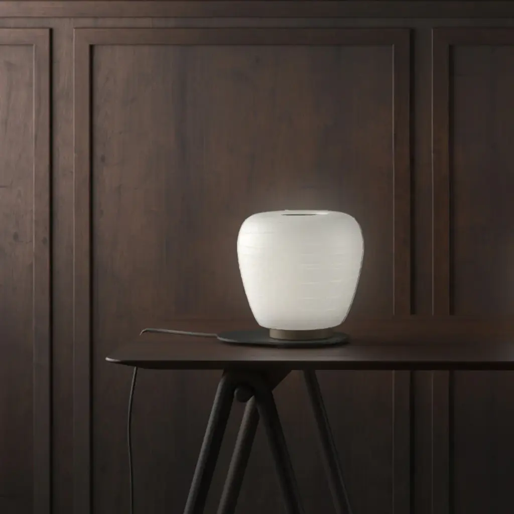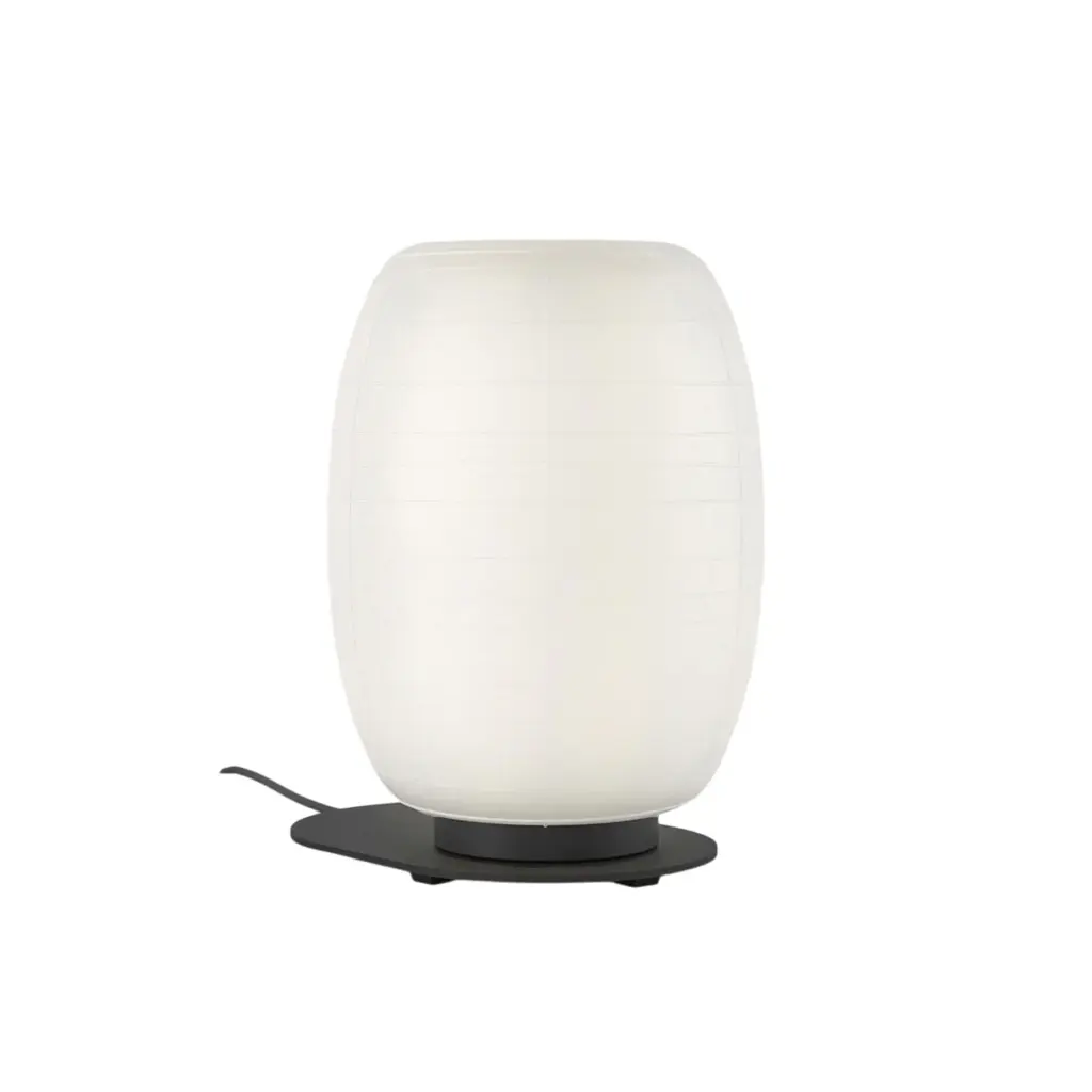 The Misko Table Lamp from B.lux brings retro-inspired elegance to tables and workspaces. Crafted by Stone Designs, it features a sleek oval base supporting a round housing that holds the lamp, softened by a matte opal blown glass shade reminiscent of a lantern. This design emits a warm, inviting glow, combining simplicity with enduring style to enhance any interior with subtle sophistication. Highlights