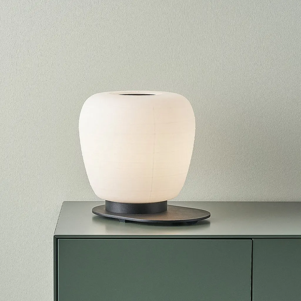 The Misko Table Lamp from B.lux brings retro-inspired elegance to tables and workspaces. Crafted by Stone Designs, it features a sleek oval base supporting a round housing that holds the lamp, softened by a matte opal blown glass shade reminiscent of a lantern. This design emits a warm, inviting glow, combining simplicity with enduring style to enhance any interior with subtle sophistication. Highlights