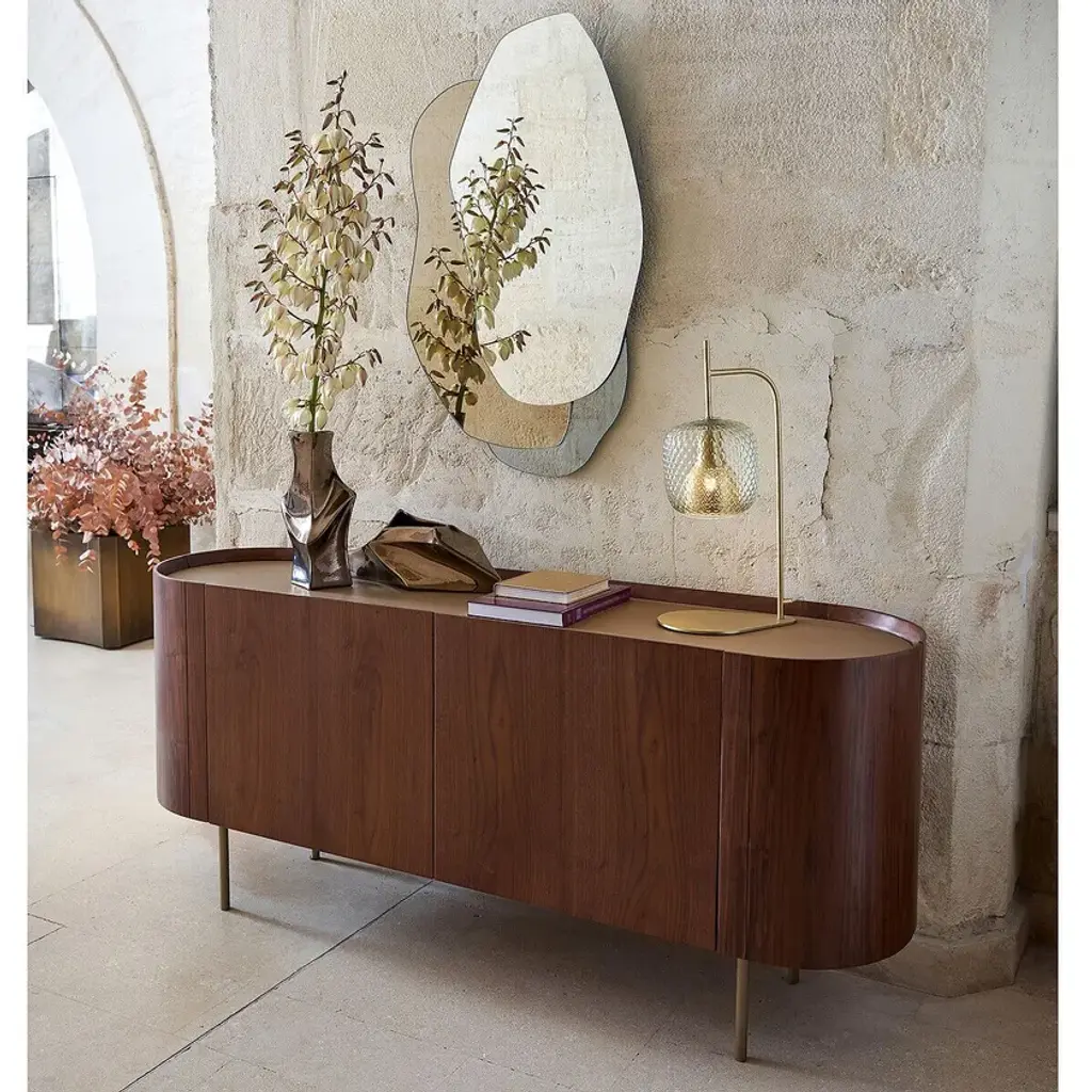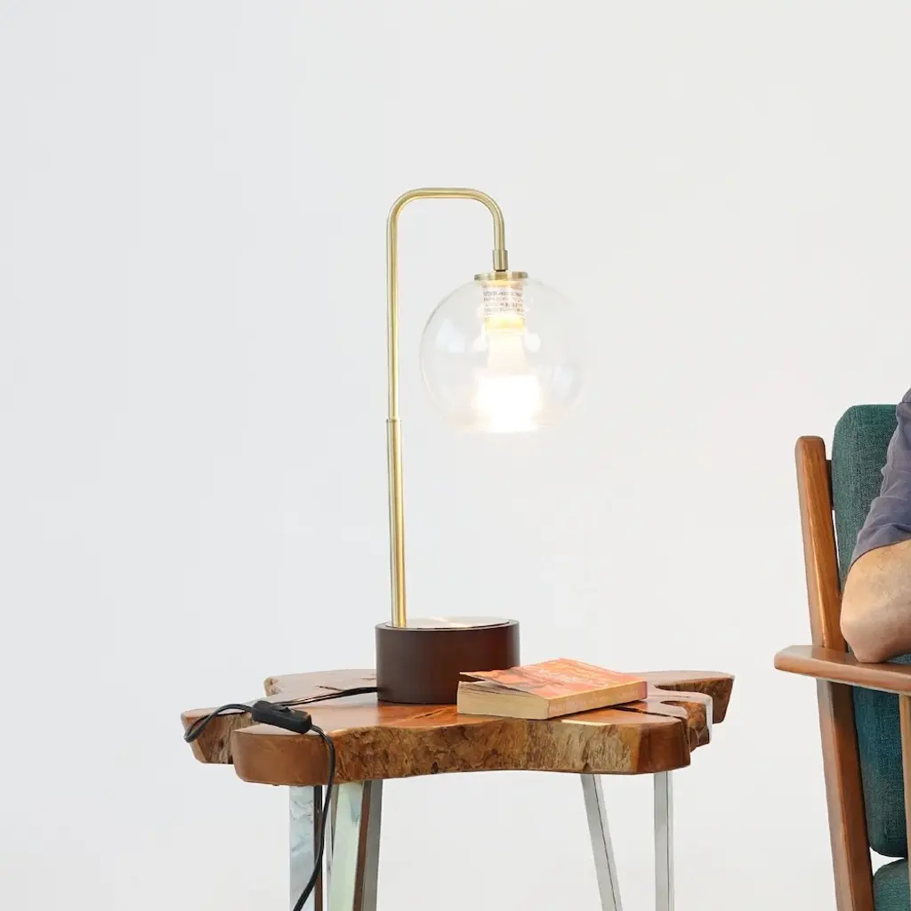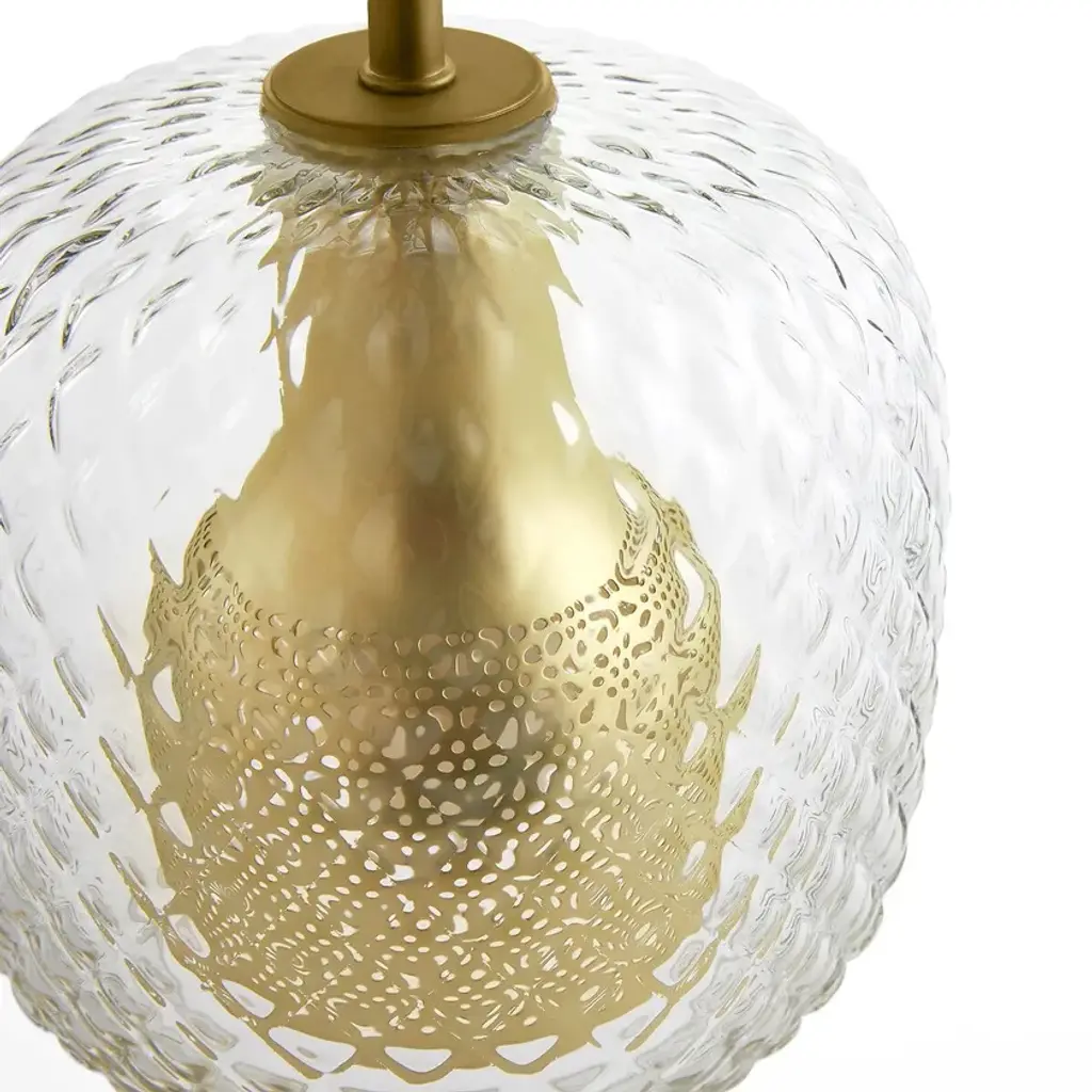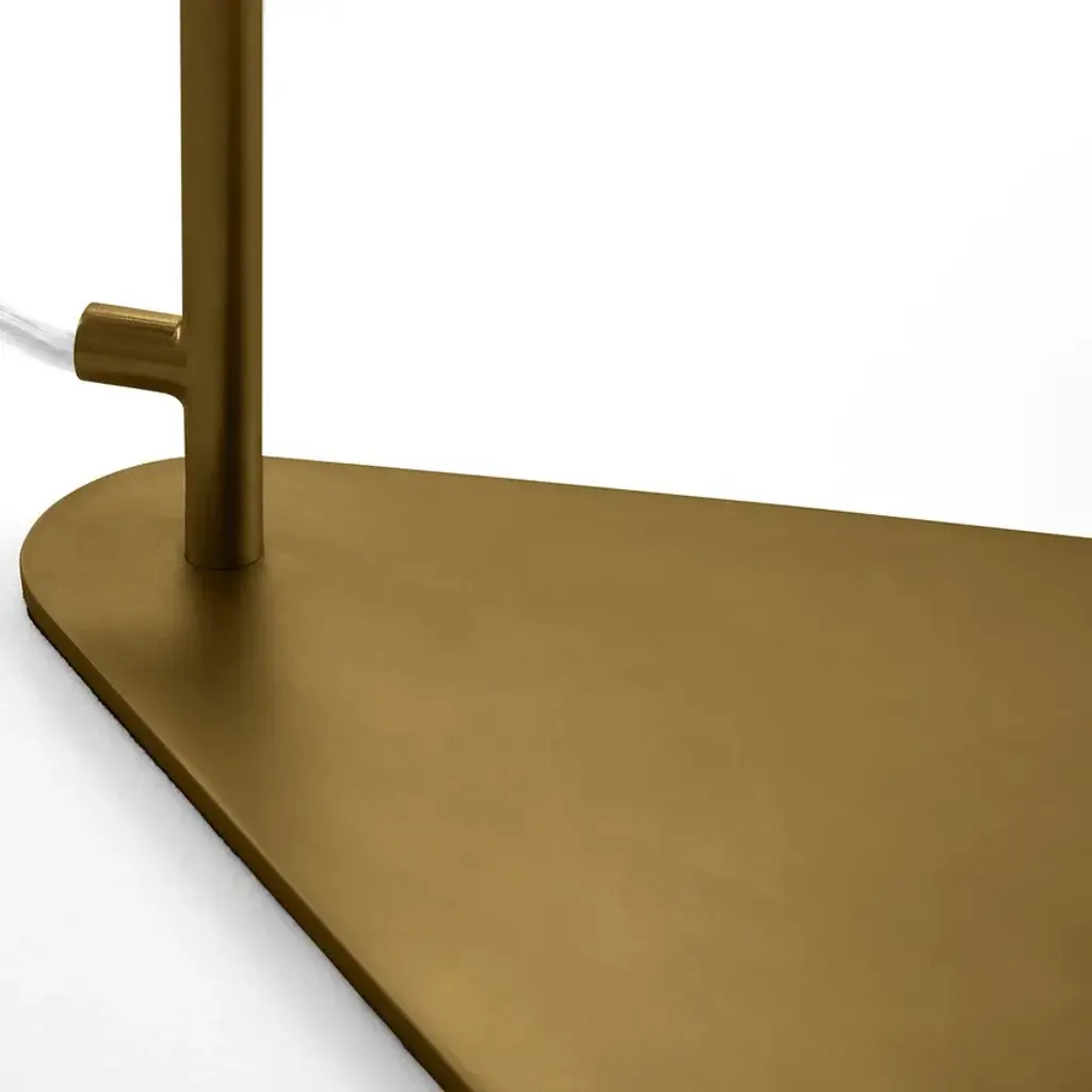 Mistinguett table lamp, an Emmanuel Gallina creation, exclusively for AM.PM. The combination of brushed brass with chiselled glass is inspired by the art deco movement where the elegance of the line emphasises the nobility of the materials. Between the perforated metal diffuser and glass globe, a play of light emerges with sweet and timeless notes.E14 lamp holder for 40W bulb (not included).Compatible with energy class A, B, C, D, E bulbs.