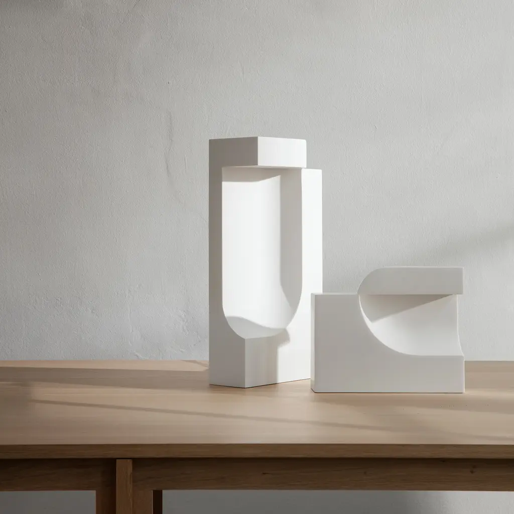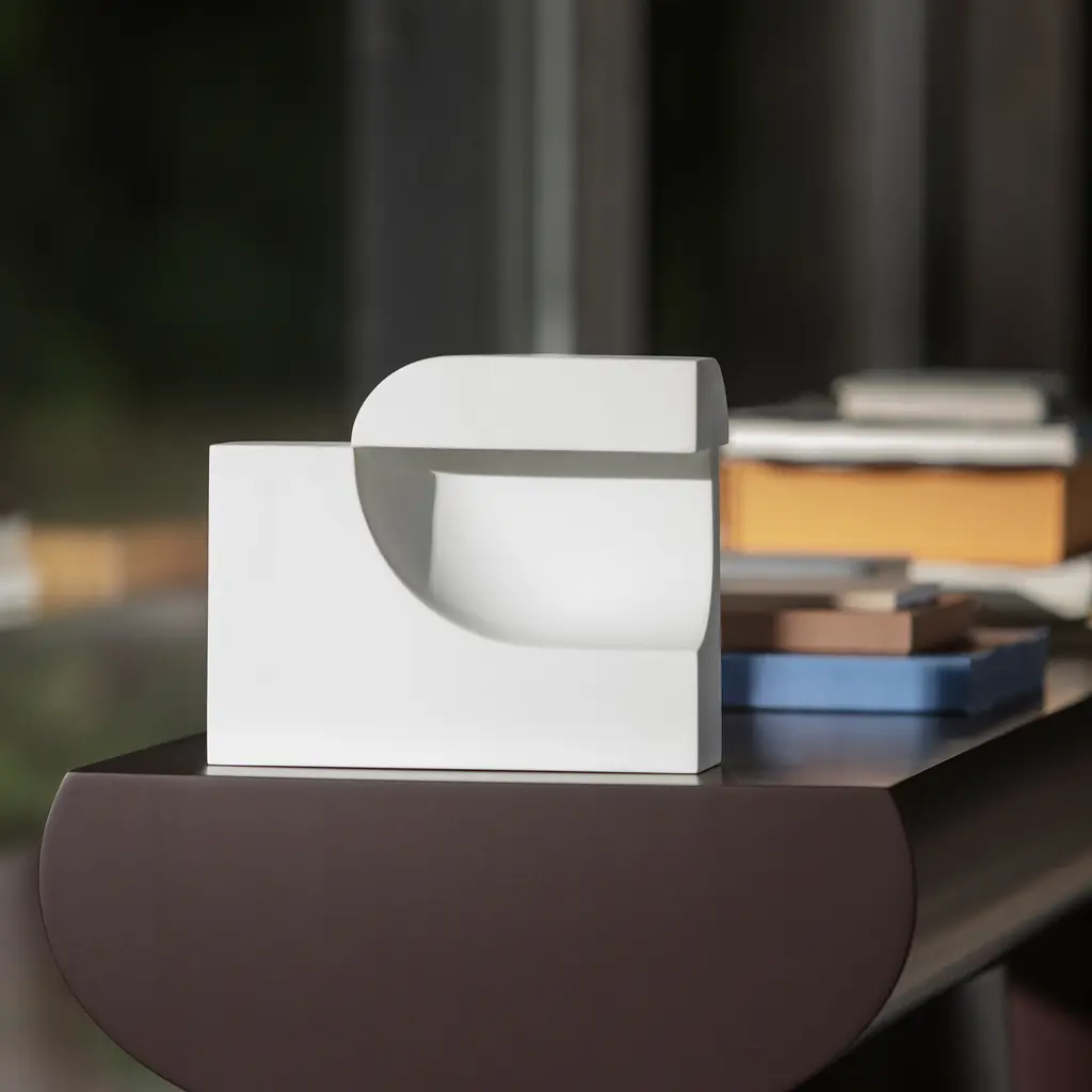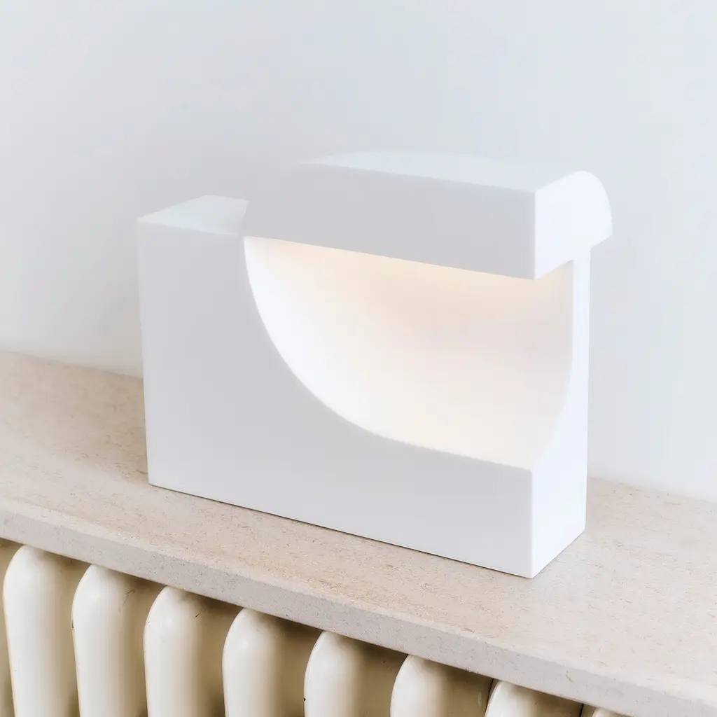 Art object or lighting? The Karakter Moby rectangular table lamp is both, creating a focal point instantly – whether it’s in use or turned off. Designed in a collaboration between designers Birgitte Due Madsen and Jonas Trampedach, the award-winning Moby was originally made from plaster. Danish brand Karakter translated the original’s soft shapes and futuristic style into a long-lasting acrylic material that boasts a silky surface and matte finish. As creative as it is modern, this rectangular table lamp features a carved section with organic shapes. Inside this void, the hidden light brightens the acrylic with a soft glow. Perfect for a side table in a bedroom or a desk in a home office, the Karakter Moby Lamp comes with a white rubber cord with a dimmer that allows you to easily change the intensity of the light.