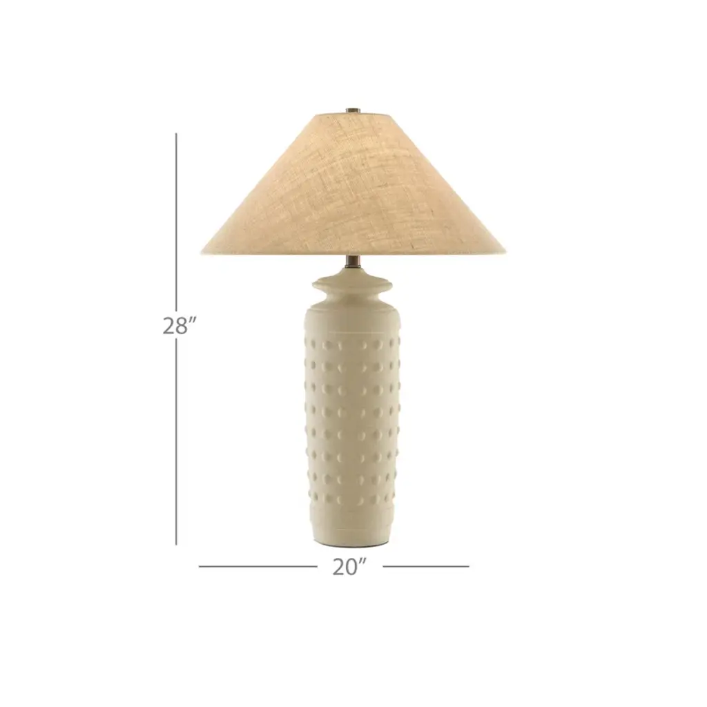 Meet your new favorite reading companion. This table lamp, with its ceramic base, is just the right blend of classic and contemporary. The single E26/Medium (Standard) bulb socket supports a maximum wattage of 150 watts, casting a warm, ambient light in any space. The three-way switch offers lighting versatility, while the burlap shade provides a subtle, rustic charm. Plus, its empire shade shape will set the scene for any room, making you feel right at home. Ready to light up your life?