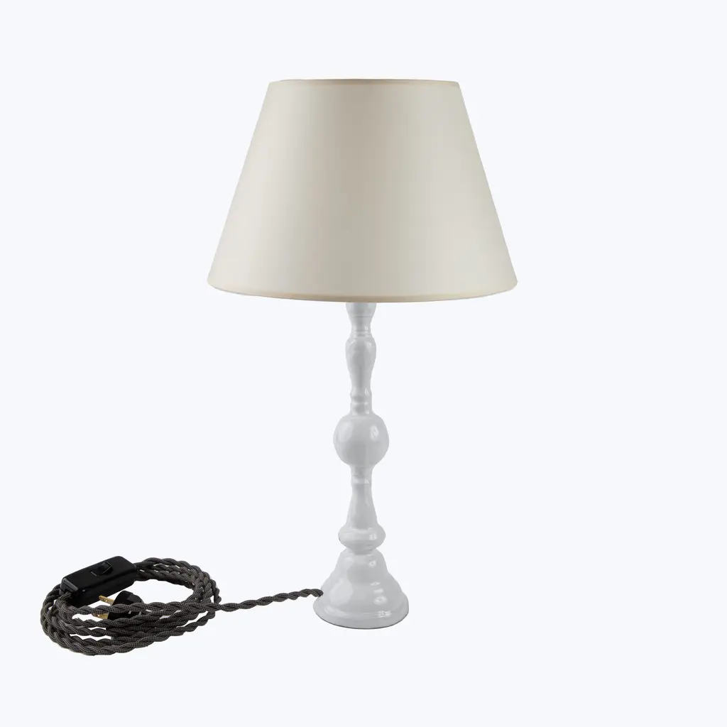 Our Mocha Check Candlestick Lamp is a bright idea for so many spaces around the house. The espresso-inspired checks are hand-painted on an enamel candlestick base, trimmed with brass, and topped with a petite bell shade.