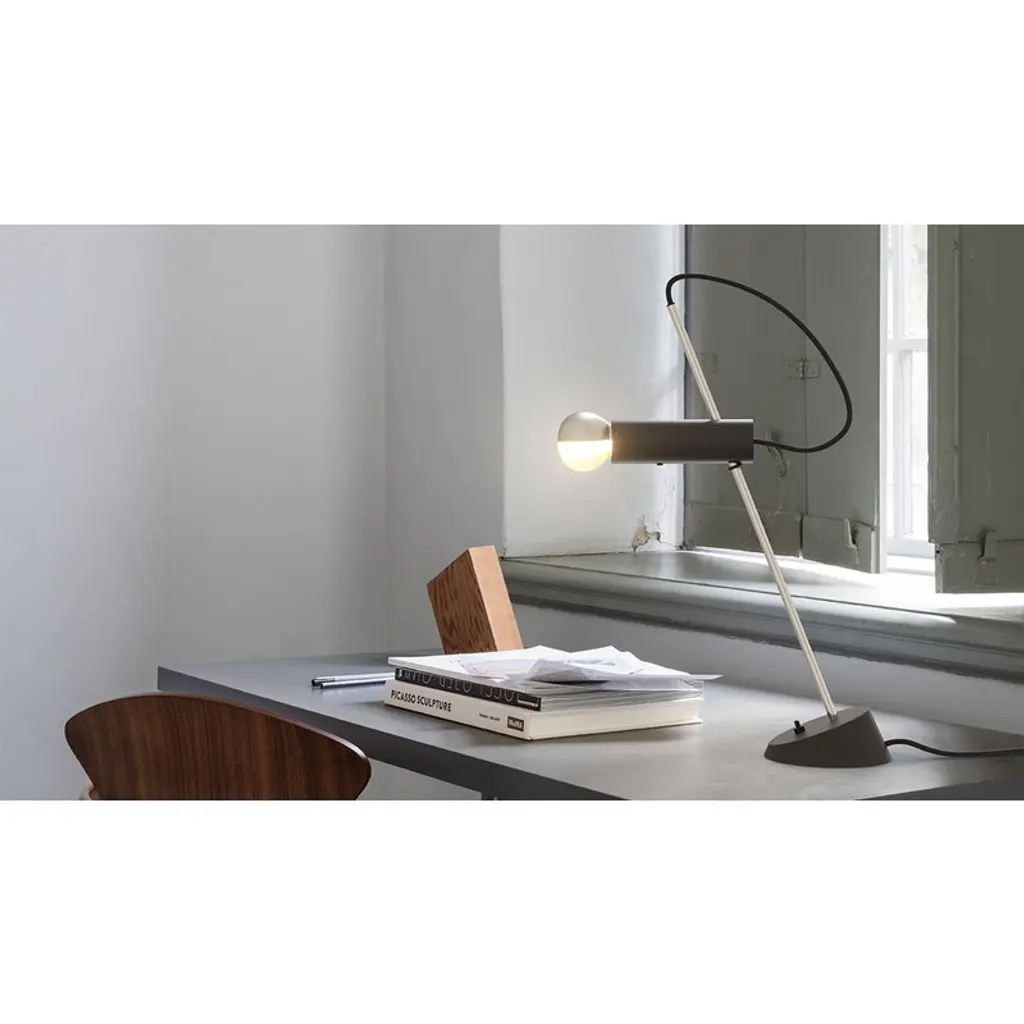 Astep's Model 566 table lamp represents the straightforward style of the legendary lighting designer Gino Sarfatti at its purest. The Italian designer was particularly well-known for his visually striking luminaires, and the Model 566 is no exception. Originally created in 1956, the table lamp captivates with its balanced but distinctive design, featuring a black steel tube on which the light source is mounted. The tube can be moved along the stem to adjust the position of the light according to the space and the mood. The elegant Model 566 table lamp is ideal for homes and public spaces as well, from the restaurant table to the hotel lobby.