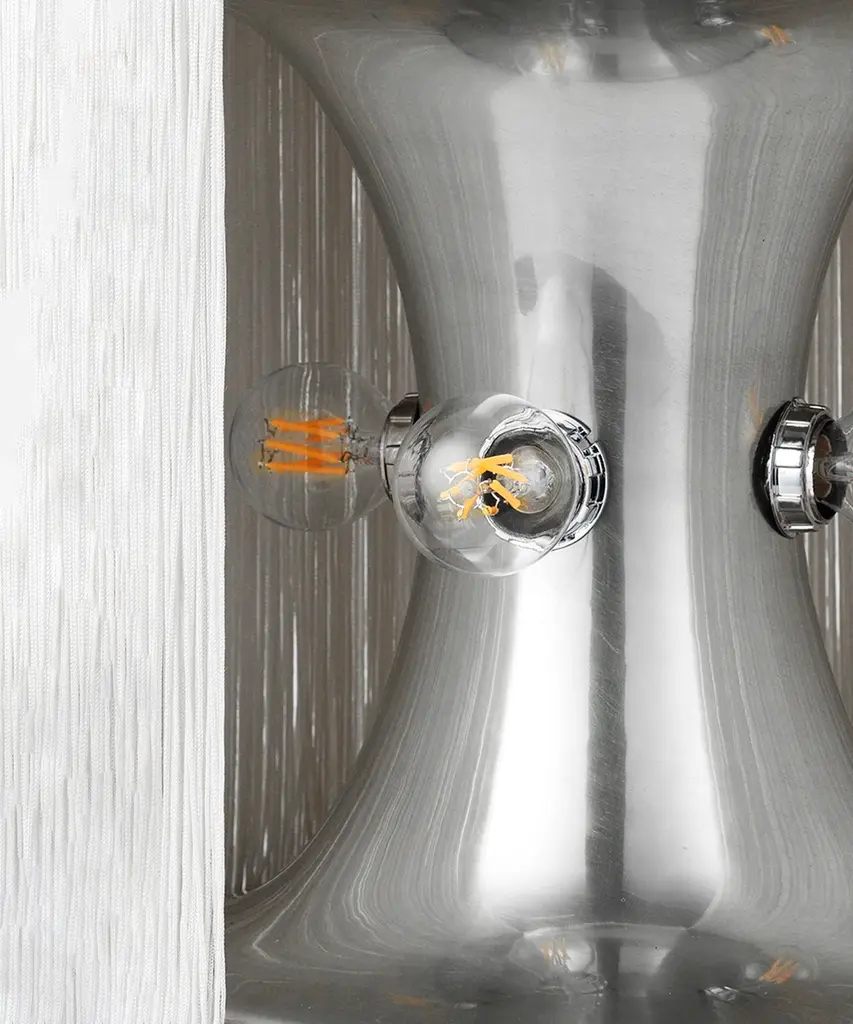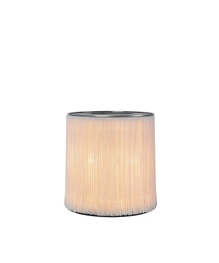 First released in 1961, the Model 597 by Italian virtuoso Gianfranco Frattini is the lamp that launched him as a lighting designer. Its unique and playful form perfectly encapsulates Frattini’s extraordinary approach to the aesthetics of light. Model 597’s unique nylon fringes were inspired by both the world of fashion and the fringed entrance curtains commonly found in Italy’s bars and grocery stores in the late 1950s. Thanks to the array of lateral bulbs, the Table Lamps emit a 360º play of indirect light, softened by the fringes to create a rich ambient glow, while the reflective aluminum cover adds warmth to the uplight. Model 597 is light-hearted in expression, but serious about functionality – bringing sophistication, fun, and character to interiors without resorting to superfluous decorative flourishes.Produced by Danish design publisher, Gubi.