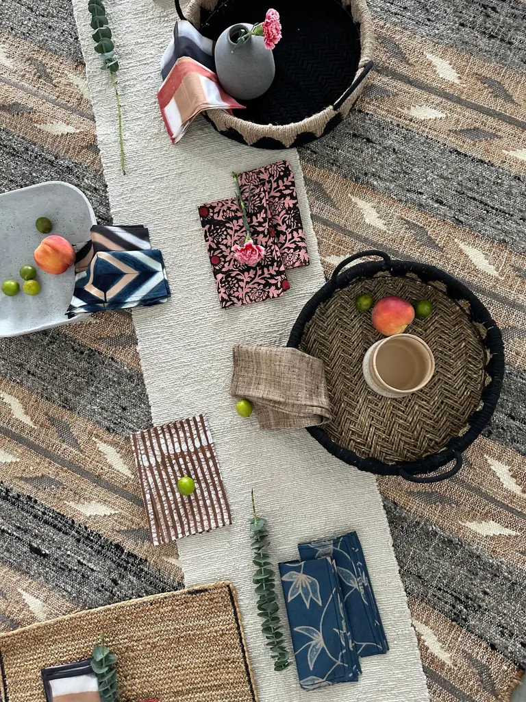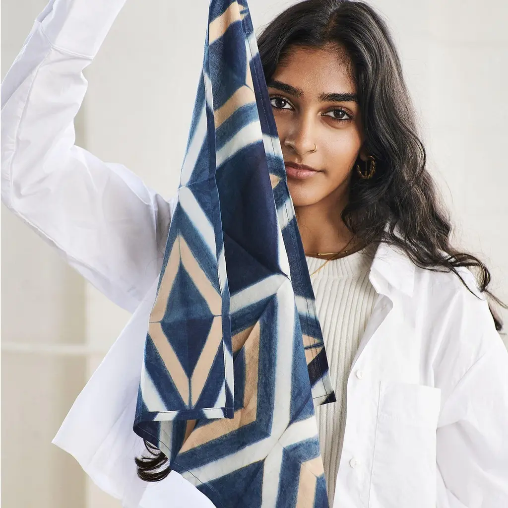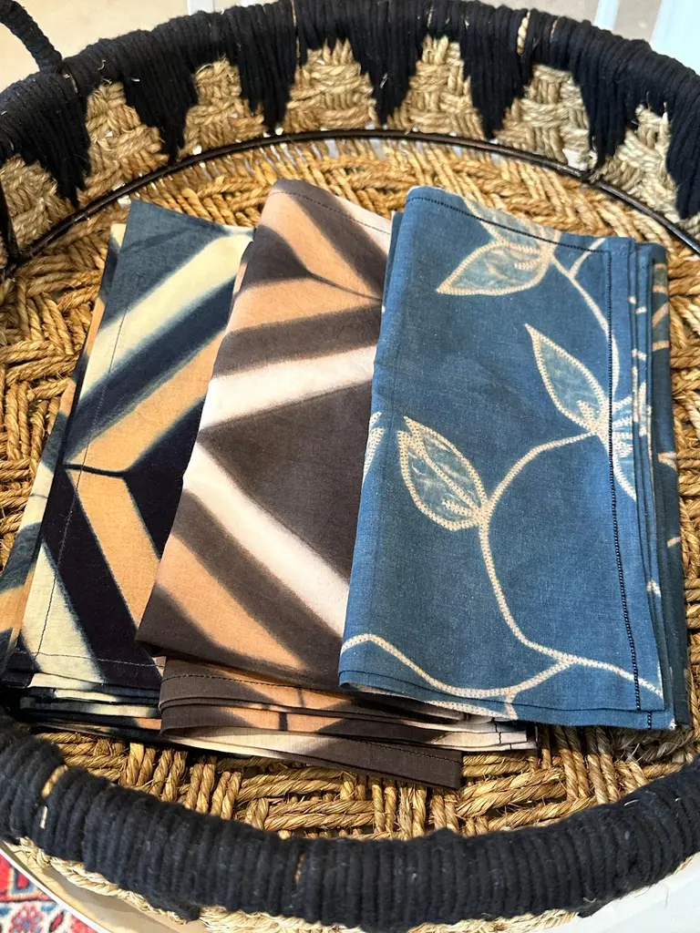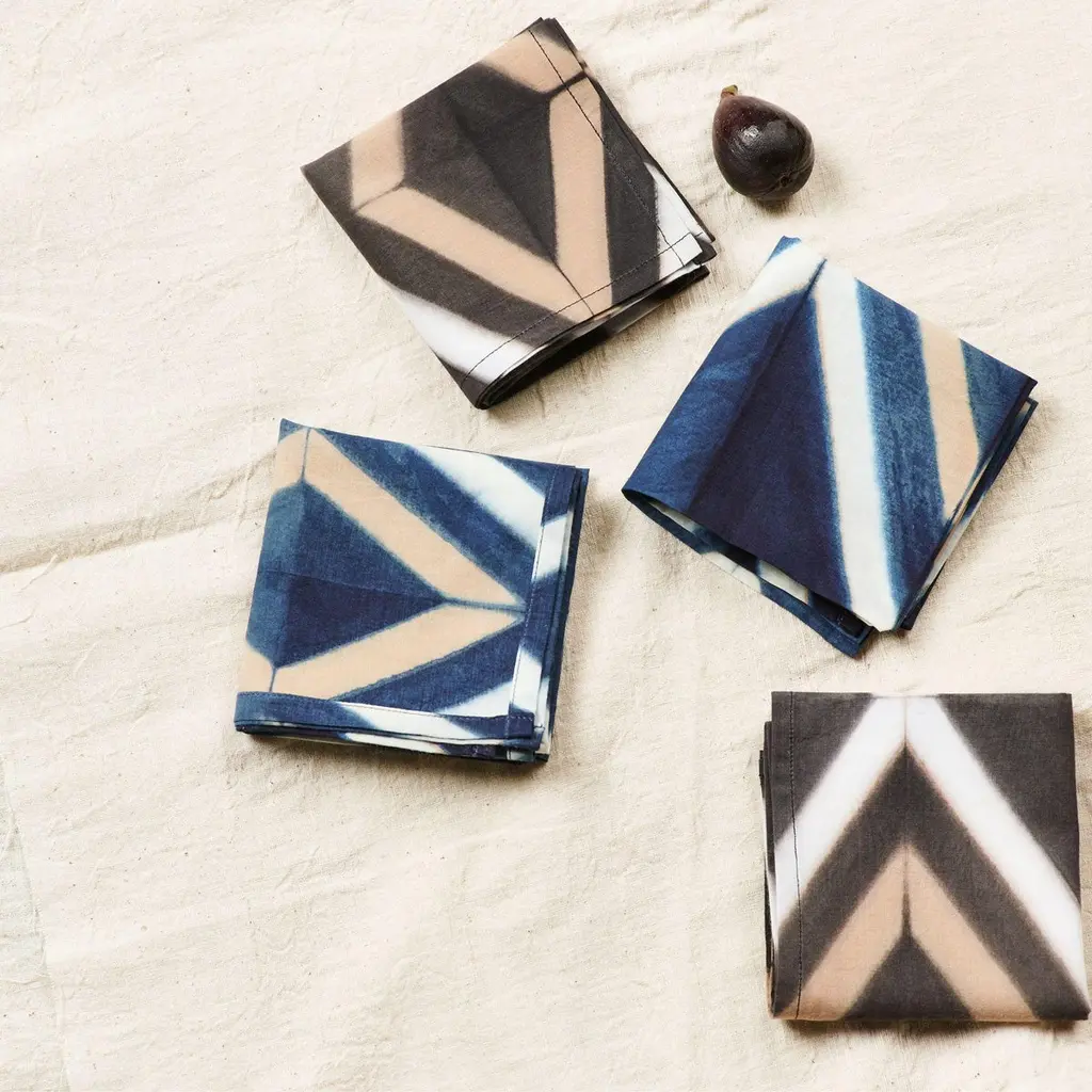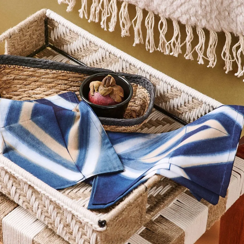 Tisa table napkin is a unique artisanal napkin. Created artistically and ethically by artisans in India using clamp dye technique, using only pure natural dyes. It is a pure statement piece that adds modern and timeless quality as a table ware accessory Classic & timeless in design, Tisa napkin in indigo is a sustainable luxury statement.Created all by hand these napkins are made in small careful batches, each piece being unique as it is completely handcrafted. Natural elements local to the artisan clusters are used to custom create dyes for this production. Each order includes a set of 4 napkins. Material: 60s cotton ( thick ) Size: 18X18" (square)Color: IndigoArtisan base: Ethically & responsibly handmade by artisans in IndiaWash care: Gently hand wash separately. Hang dry in cool shaded place.What Makes Your Purchase Sustainable?- 100% organic dyes sourced locally and made to order.- Support employment of women artisans.- 100% handmade manufacturing process by artisans.- All pieces are sun dried / air dried to conserve energy. - Use only 100% natural + biodegradable responsibly sourced materials.- Small batch production ensures higher quality & less wastage.