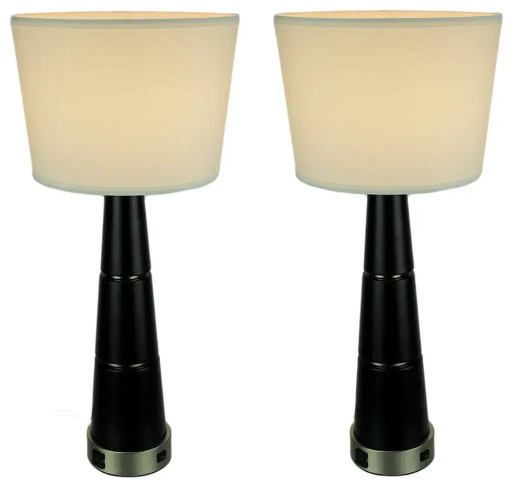 Modern Black Tapered Table Lamp With Power Outlets Set Of 2