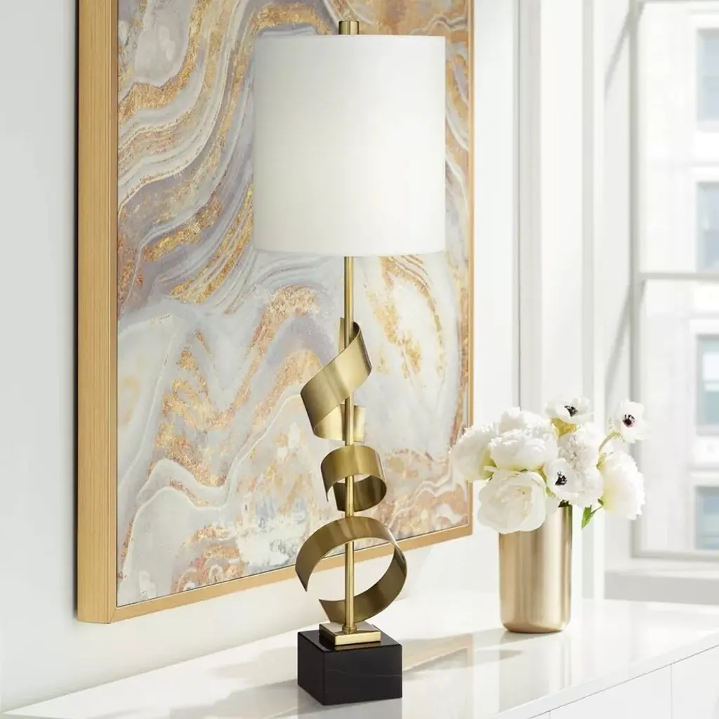 Modern Buffet Console Table Lamp 32" Tall Gold Scroll Metal - 9" X 32" - 9" X 32" - Gold