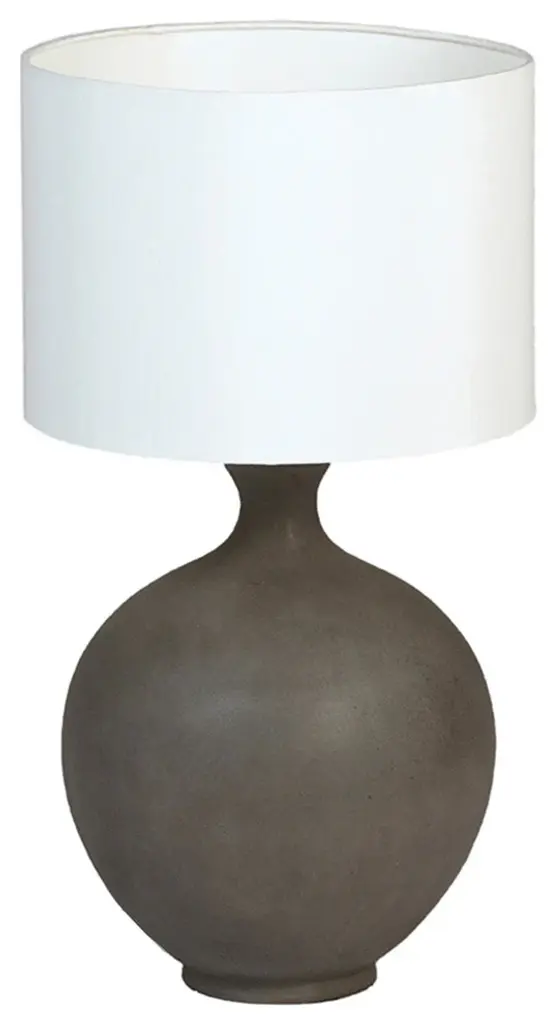 Modern cement table lamp with beautiful smooth rounded shape. White linen shade. Each lamp may be slightly unique in exact cement base shape and natural finish. This item is non-returnable - all sales are final.Bulb Type: 75 Watt Number of Bulbs: 1Bulbs Included: 0UL Certified