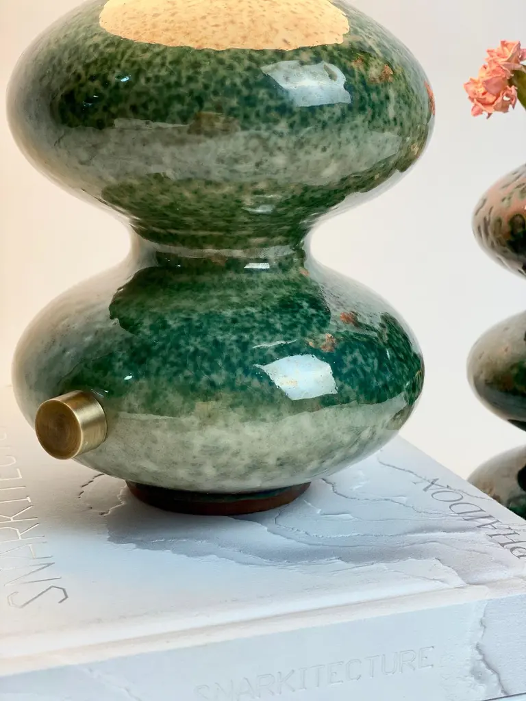 Modern Ceramic Handmade Wave Form Table Lamp In Green By Forma Rosa Studio