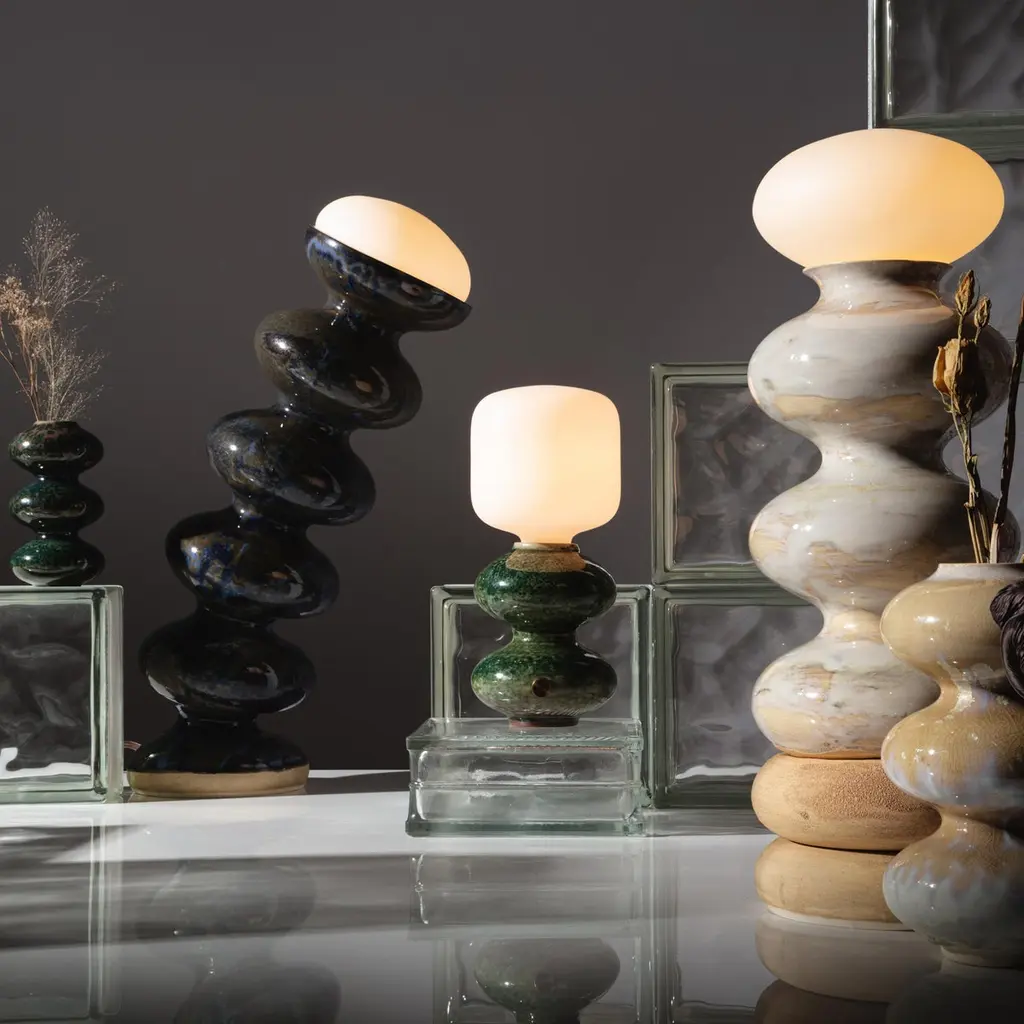 The Wave Form table lamp is a sophisticated approach to our Wave Form signature collection, as it stresses the simplicity of its primal melodic form combined with its proportions with the light source.Body made of glazed ceramic stoneware. This material interacts beautifully with light as its thickness lets its body slightly glow. Color finish varies per piece as each is unique in its own hand-crafted right."Elegant, sophisticated, elevated."Wave collection offers playful geometric shapes rooted in primal forms that appeal universally.