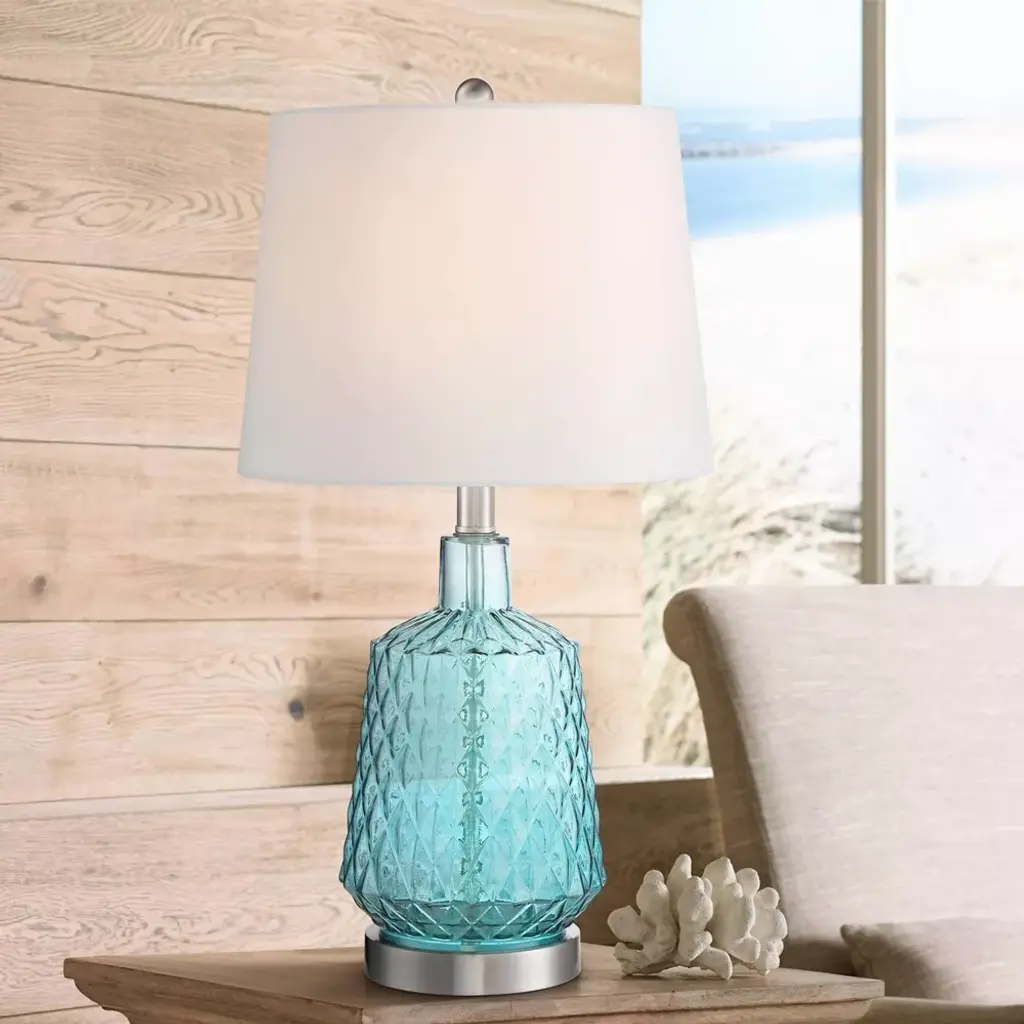 Modern Coastal Accent Table Lamp 22" High Blue Glass - 12" X 22" - 12" X 22" - Blue