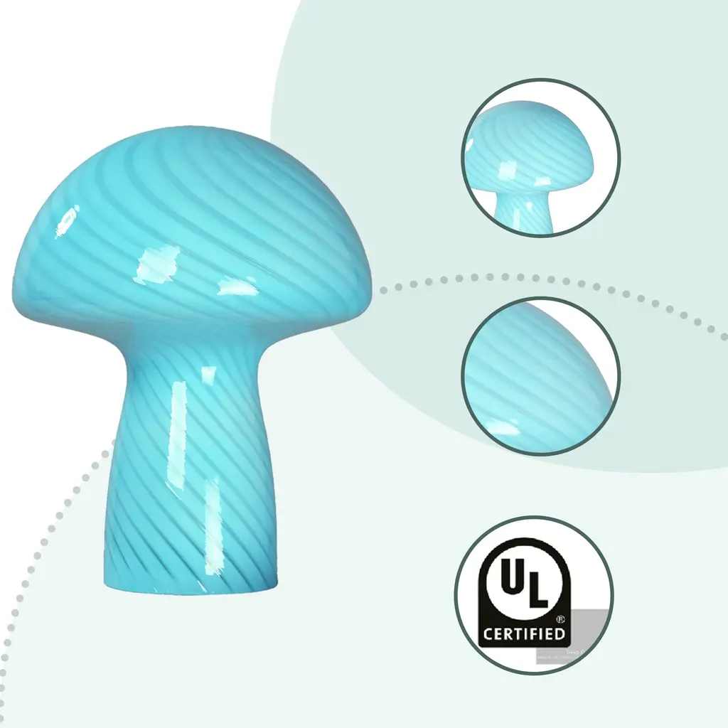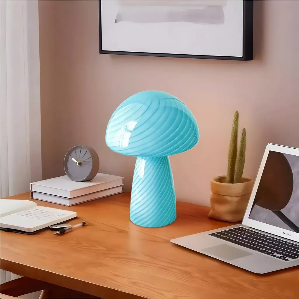 Modern Glass Mushroom Novelty Table Lamp With Stripes - Blue