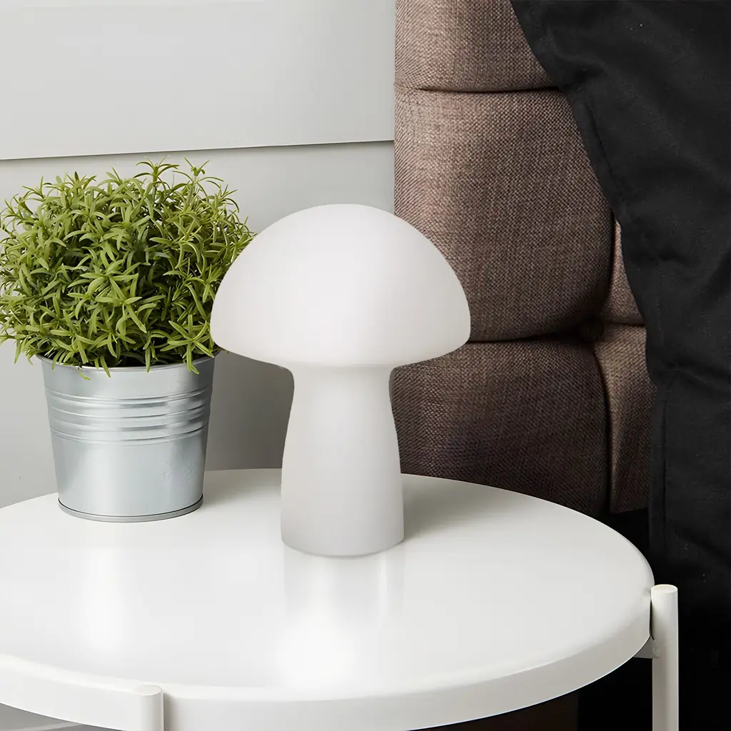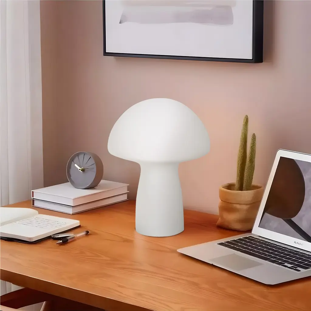 This mushroom shaped table lamp is made of handcrafted glass material, featuring a cute and delicate design with a smooth and refined texture, perfectly combining simplicity and elegance to add a touch of color in your room. The compact and exquisite lamp shows the beauty of translucent light and shadow interaction, making it even more dazzling. The unique combination of mushroom shape and diverse colors not only offers visual enjoyment, but also practical functionality.Feature:Highlight: