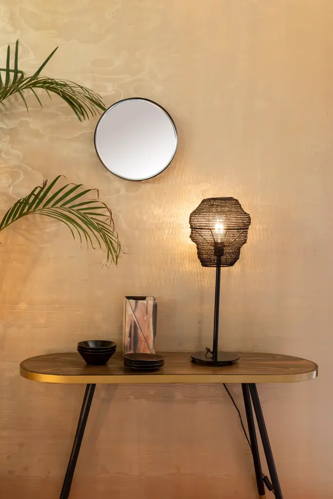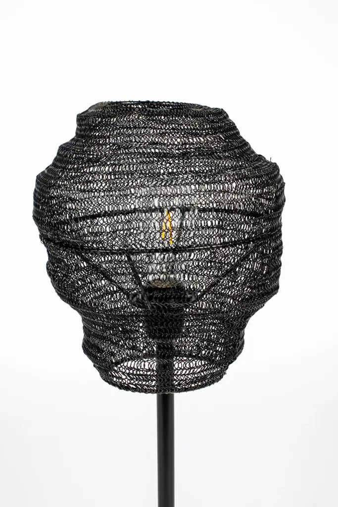 A gorgeous table lamp made of intricately woven iron. Lena by DF presents a unique geometrical canopy casting interesting shadows and silhouettes over any space.