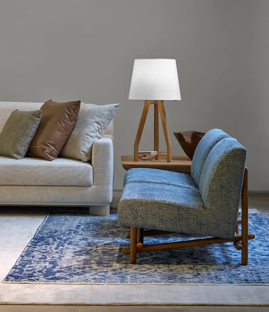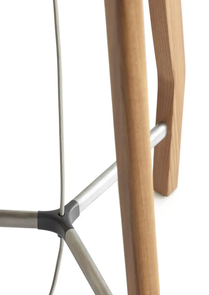 This modern style lamp is from the Glide collection is composed by table and floor lamps, in generous dimensions, our objective was to create a product based on the archetypes, bus thought in modern key full of small details to compose a rich decorative and abstract object, refined and elegant thru the use of a rich material combination that is still soft to the eye, harmonic and cult. This is possible they the use of the golden section, a rule studied by Leonardo Davinci that is fully integrated in our creative process. A thin metal bar holds the lamp hat, and a beautiful structure in solid tauarí wood composes the structure, in the lower section of the lamp we have metal oval pipes and a resin molded form that unite them and holds the wire straight. The objects are conceived with a lot of love and worked by hand with precision in the whole process in São Paulo, Brazil.