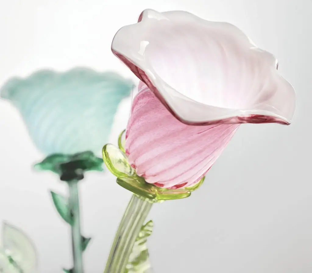 The collection, designed by Alessandra Baldereschi, is composed of six unopened flowers in hand-blown artistic glass; precious gems that are about to open and reveal all their beauty. They are buds in six pastel colors, which, once illuminated, show additional chromatic tones.This version of the lamp has an integrated rechargeable battery, with a replaceable LED bulb in the center of the corolla.Size: diam. cm 10 x 40 HAlso available in other colours: Dawn Orange, Turquoise Dream, Starlight Yellow, Mermaid's Green, Moonlight Periwinkle Please note that size tolerances in handmade fixtures may range up to 5% of the overall size.