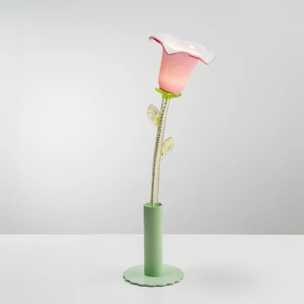Modern Rechargeable Table Lamp Murano Glass Flower Alessandra Baldereschi