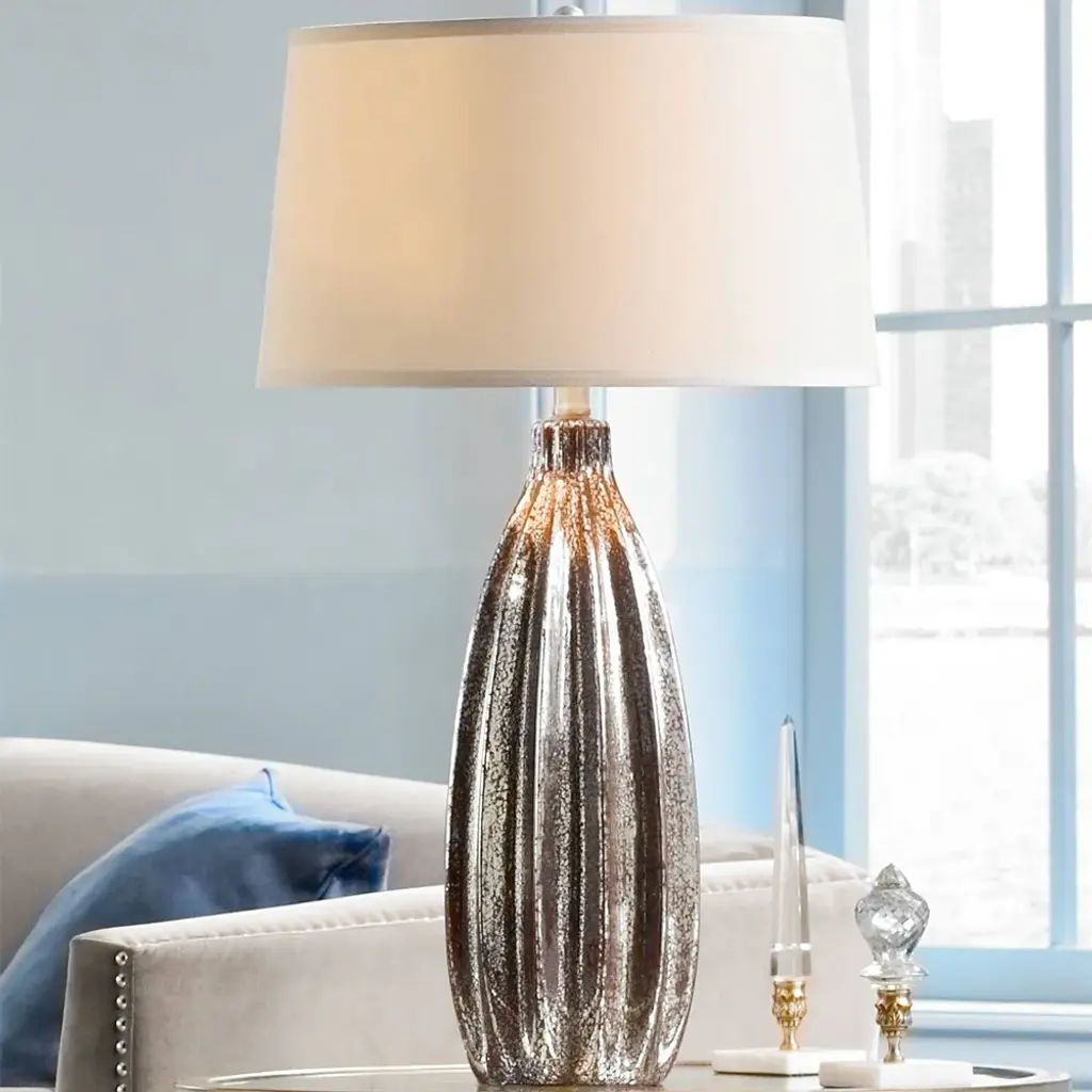 Modern Table Lamp 30" Tall Fluted Mercury Glass For Bedroom - 17" X 30" - 17" X 30" - Silver