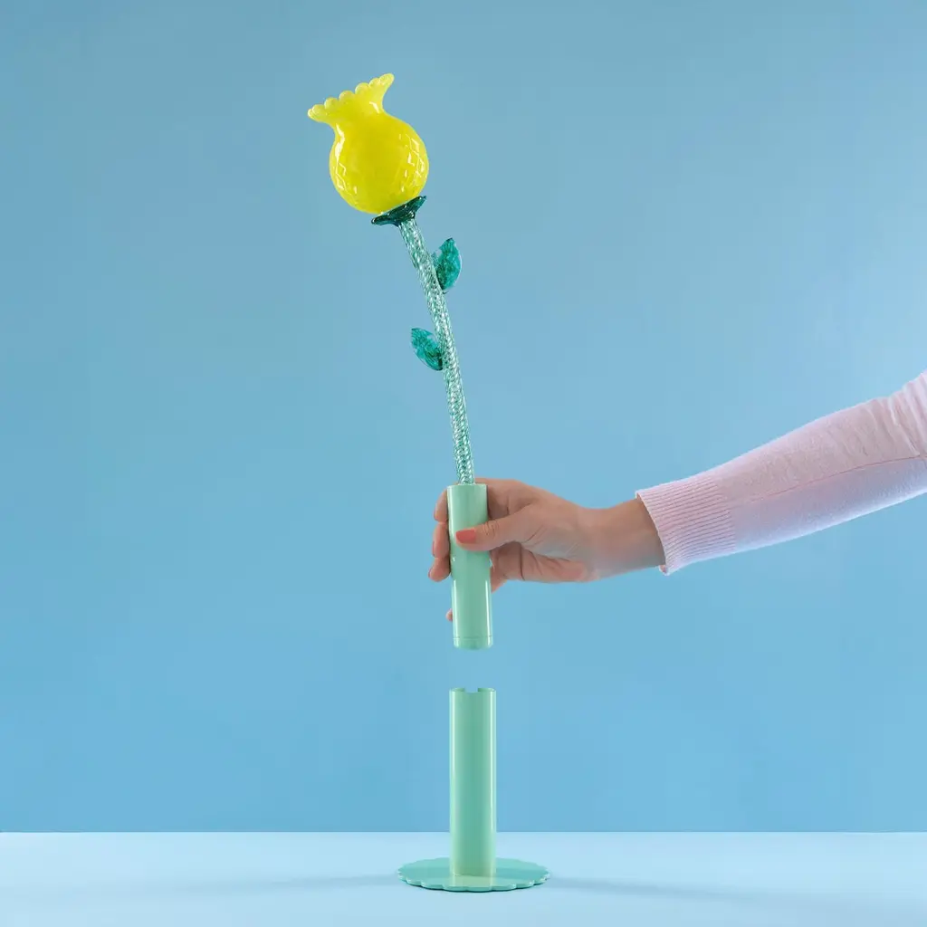 The collection, designed by Alessandra Baldereschi, is composed of six unopened flowers in hand-blown artistic glass; precious gems that are about to open and reveal all their beauty. They are buds in six pastel colors, which, once illuminated, show additional chromatic tones.This version of the lamp has an integrated rechargeable battery, with a replaceable LED bulb in the center of the corolla.Size: diam. cm 10 x 40 HAlso available in other colours: Dawn Orange, Turquoise Dream, Whispering Rose, Mermaid's Green, Moonlight Periwinkle Please note that size tolerances in handmade fixtures may range up to 5% of the overall size.
