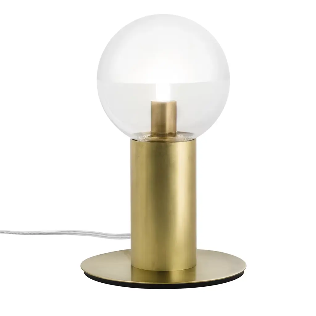 Inspired by Art Deco atmospheres yet clearly contemporary, the Molecola collection combines natural or antique brass elements with glass spheres. The collection includes an Italian brass pendant lamp, floor lamp, ceiling lamp, wall lamp and tablelamp. They can be used individually or combined to create customised compositions.