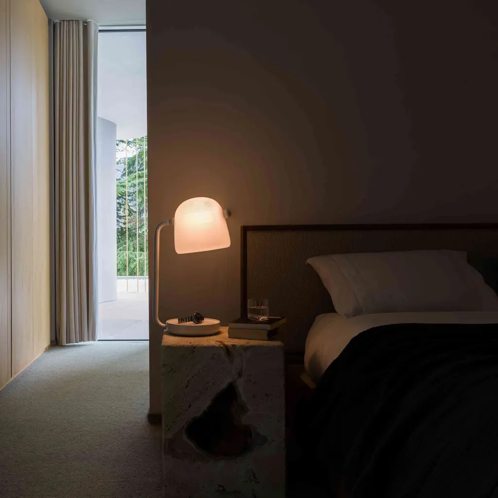 The Mona LED Table Lamp from Brokis is a masterclass in minimalist elegance and sculptural poise. Designed by Lucie Koldova, this refined piece features a handblown glass dome partially revealing a bold LED light source, creating a captivating dialogue between opacity and illumination. The sleek metal base grounds the design, allowing the luminous form to command attention with subtlety and grace. Perfect for bedside tables or desks, Mona infuses any space with a warm, modern glow that feels both artful and inviting. Highlights