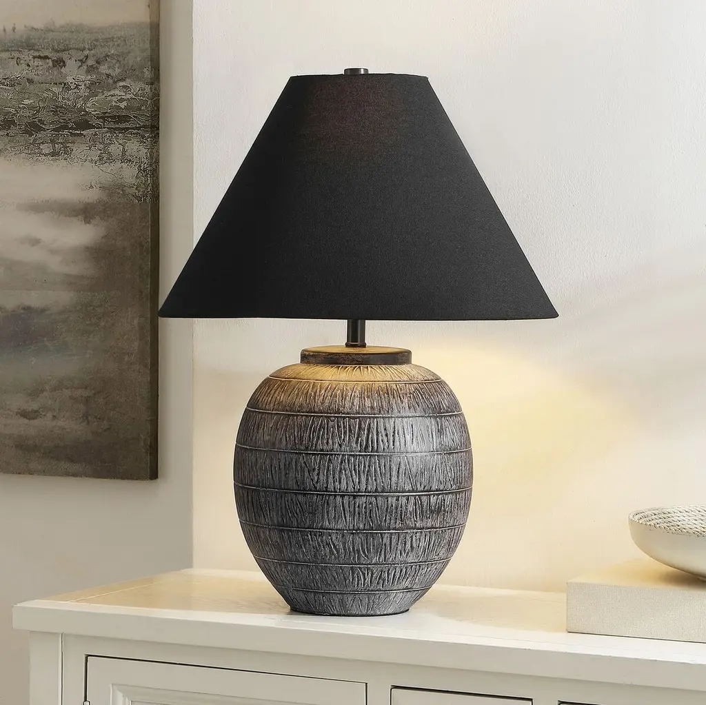 Illuminate your space with the distinct charm of the Moni Table Lamp. This lamp features a unique ceramic body that adds texture and a touch of elegance to any room. The contrasting fabric shade creates a cozy ambiance and invites a warm and inviting feel. Whether placed on a bedside table or as a centerpiece in your living room, this lamp effortlessly harmonizes with your existing decor while providing ample lighting.