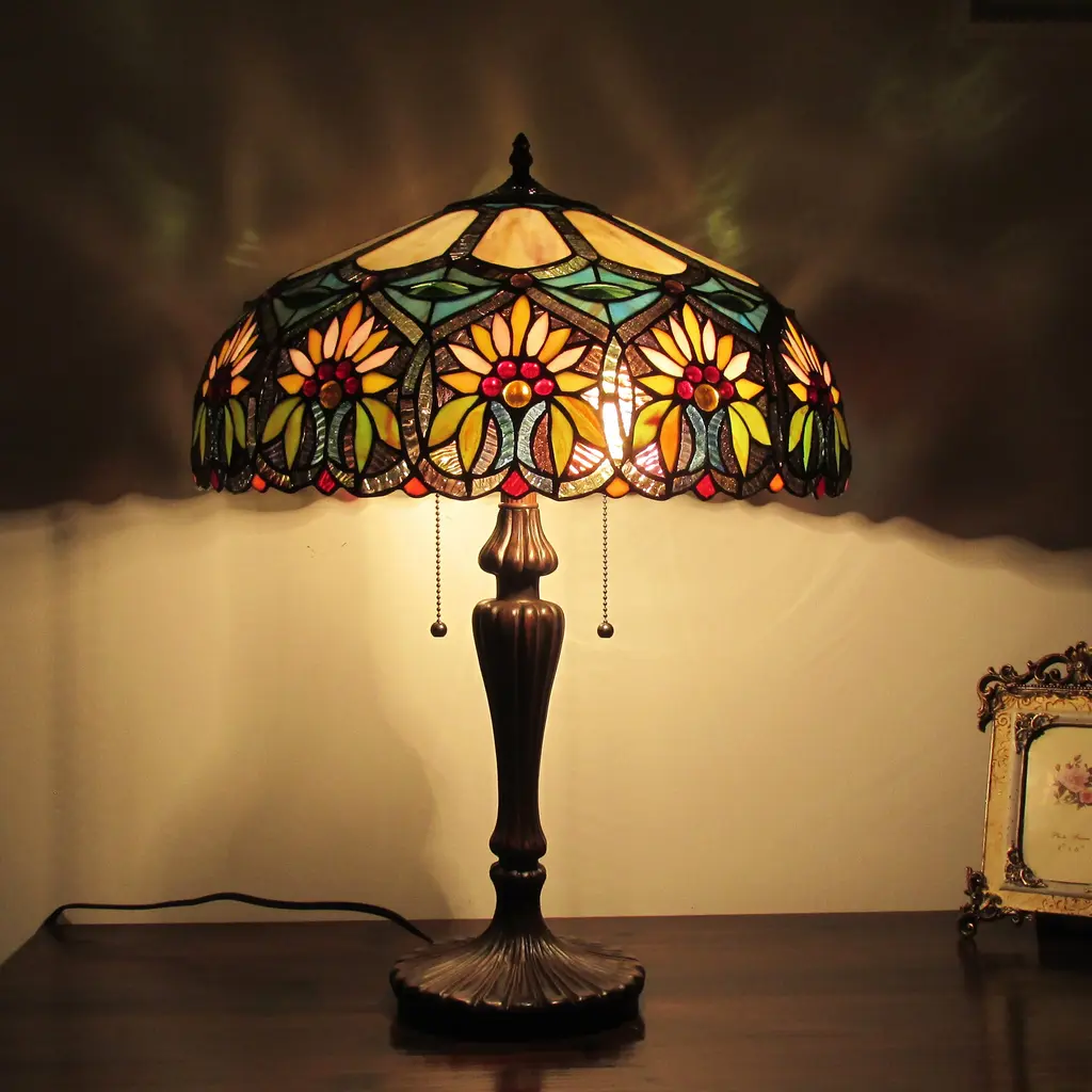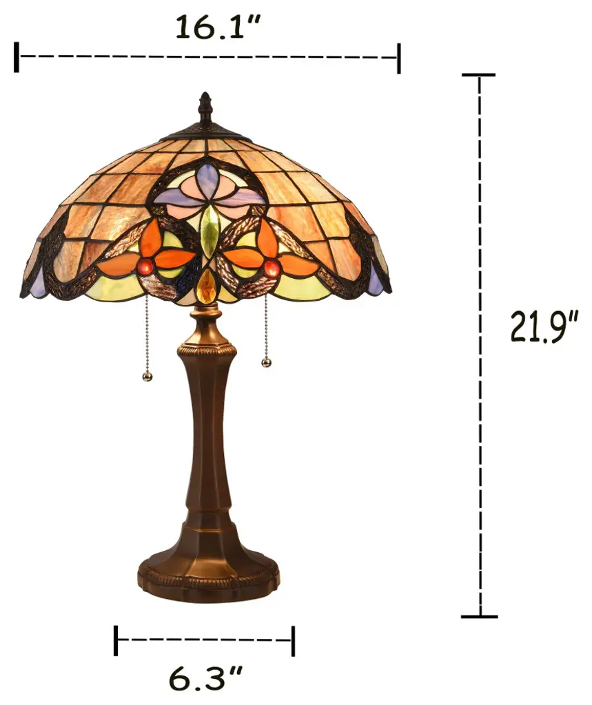 Monroe Victorian Tiffany-Style 2 Light Table Lamp 16" Wide