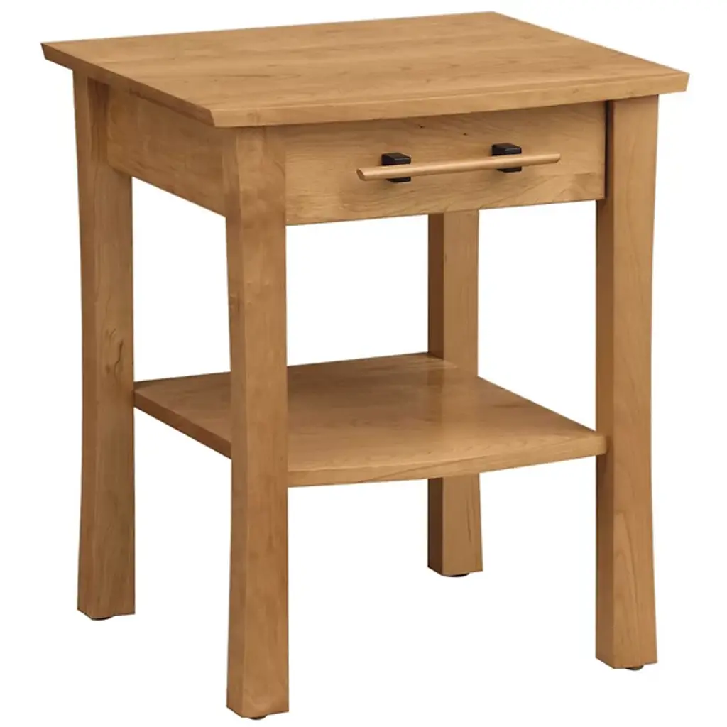 Meeting needs in style. With one purpose in mind, the Copeland Furniture Monterey 1 Drawer Nightstand offers a simple, stylish, effective frame. A slight piece made from elegant Solid Cherry Hardwood, this nightstand features long legs and a slender drawer. The top of the stand delivers plenty of usable surface space, perfect for bedside lamps, alarm clocks and the like. Slick drawer glides make for easy and consistent operation, keeping small possessions out of sight but within immediate reach. While the frame is small, the handcrafted Hardwood makes the piece plenty durable and supportive. Handcrafted in Vermont, the nightstand provides a fashionable bedroom accent that’s full of convenience.