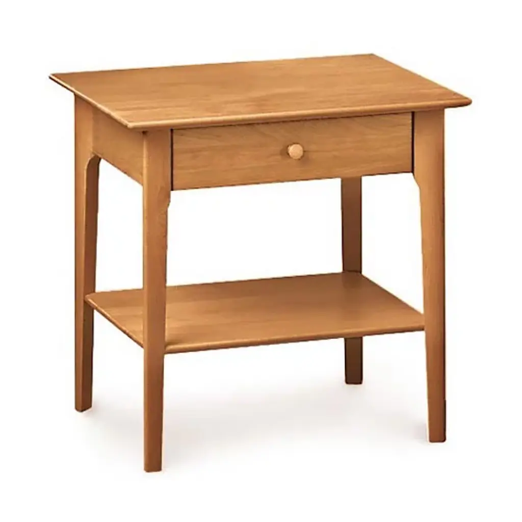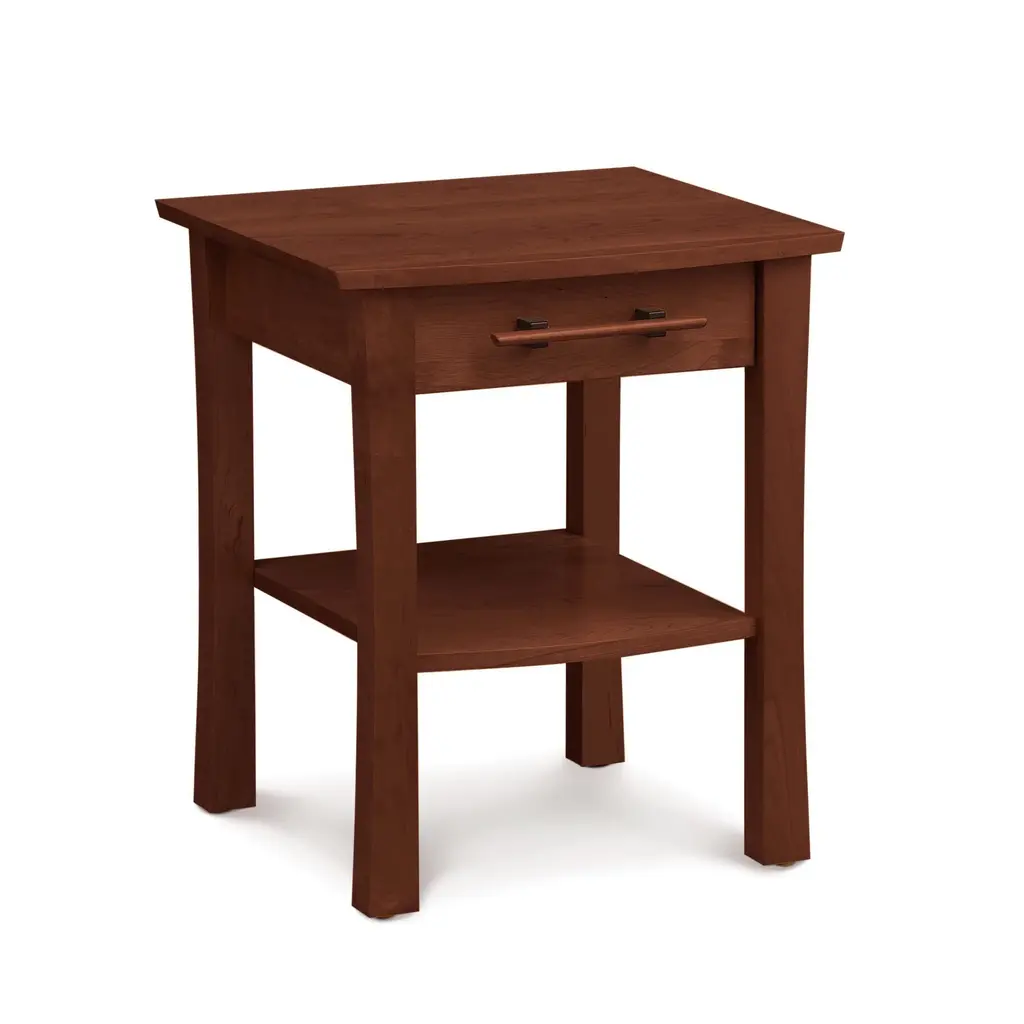 Meeting needs in style. With one purpose in mind, the Copeland Furniture Monterey 1 Drawer Nightstand offers a simple, stylish, effective frame. A slight piece made from elegant Solid Cherry Hardwood, this nightstand features long legs and a slender drawer. The top of the stand delivers plenty of usable surface space, perfect for bedside lamps, alarm clocks and the like. Slick drawer glides make for easy and consistent operation, keeping small possessions out of sight but within immediate reach. While the frame is small, the handcrafted Hardwood makes the piece plenty durable and supportive. Handcrafted in Vermont, the nightstand provides a fashionable bedroom accent that’s full of convenience.