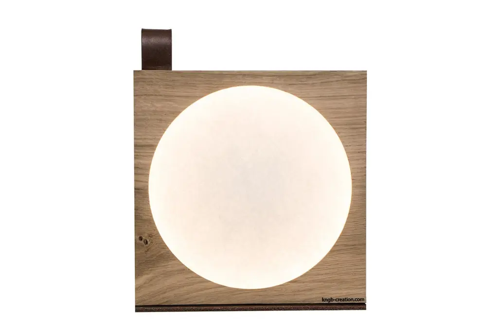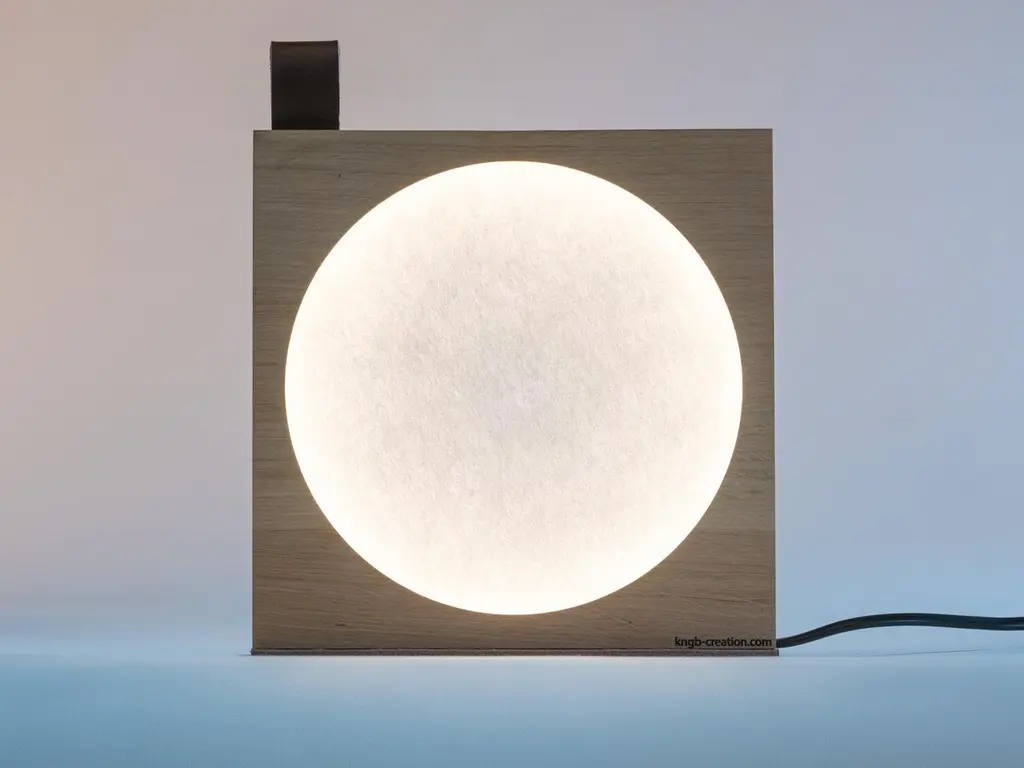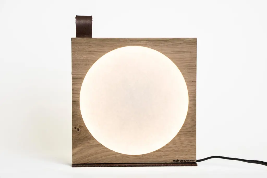 Moon Table Lamp by KNGBDimensions: W 20 x H 20 cmMaterial: Wood, LED LED 2700°k 7w integrated.KNGB, design studio has been based in Roubaix since 2014, within the former heart of the textile industry. We specify our style and artisanal know-how to reincarnate the traditional heart, the creative spirit and the working force of the nord of France, a region that, by itself, thrilled french industry from 19th to the 20th century. Through the veins of our company reappears this shining soul, through the manufacture and sale of lighting and furniture, each component having its own history; an history that has been driven by three golden rules: handmade, noble mate-rials, coming from short circuits. From the beginning of the adventure, ethics and excellence have been the soul of our creations. It is also by taking the meticulousness of leather goods and the avant-garde of haute couture that we have created original products haut de gamme, durable and timeless. our high-level of exigence towards ourselves and our craftsmen, creates a thriving creative energy to serve your projects and ideas, even the most ambitious ones. fully customizable, can be translated for you into an object that not only has the KNGB® style but it also be a one of a kind made for youAll our lamps can be wired according to each country. If sold to the USA it will be wired for the USA for instance.