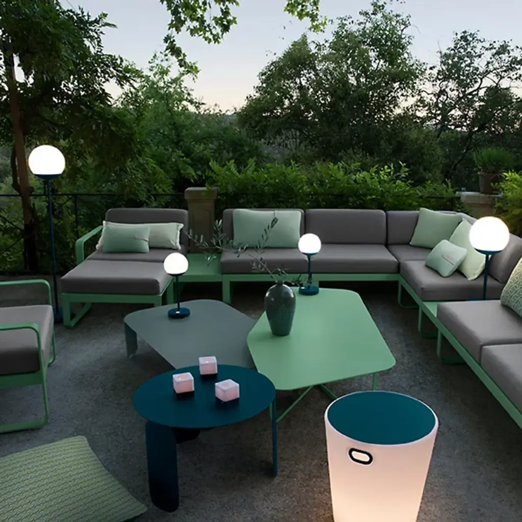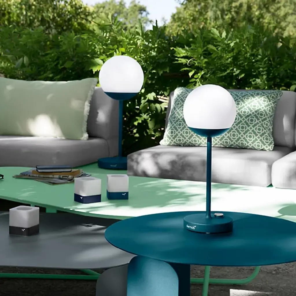 Effortlessly illuminate your favorite indoor or outdoor space with the MOON! Lamp Outdoor Table Lamp by Fermob. Made with a strong aluminum frame and available in a dazzling array of colors, you can find the perfect vibe to match your indoor or outdoor aesthetic. This battery-powered table lamp boasts 10 hours of power and includes a USB charging cable. The perfect companion to family barbecues and romantic outdoor dinners, the MOON emits a vibe that transforms any porch, patio or veranda space.