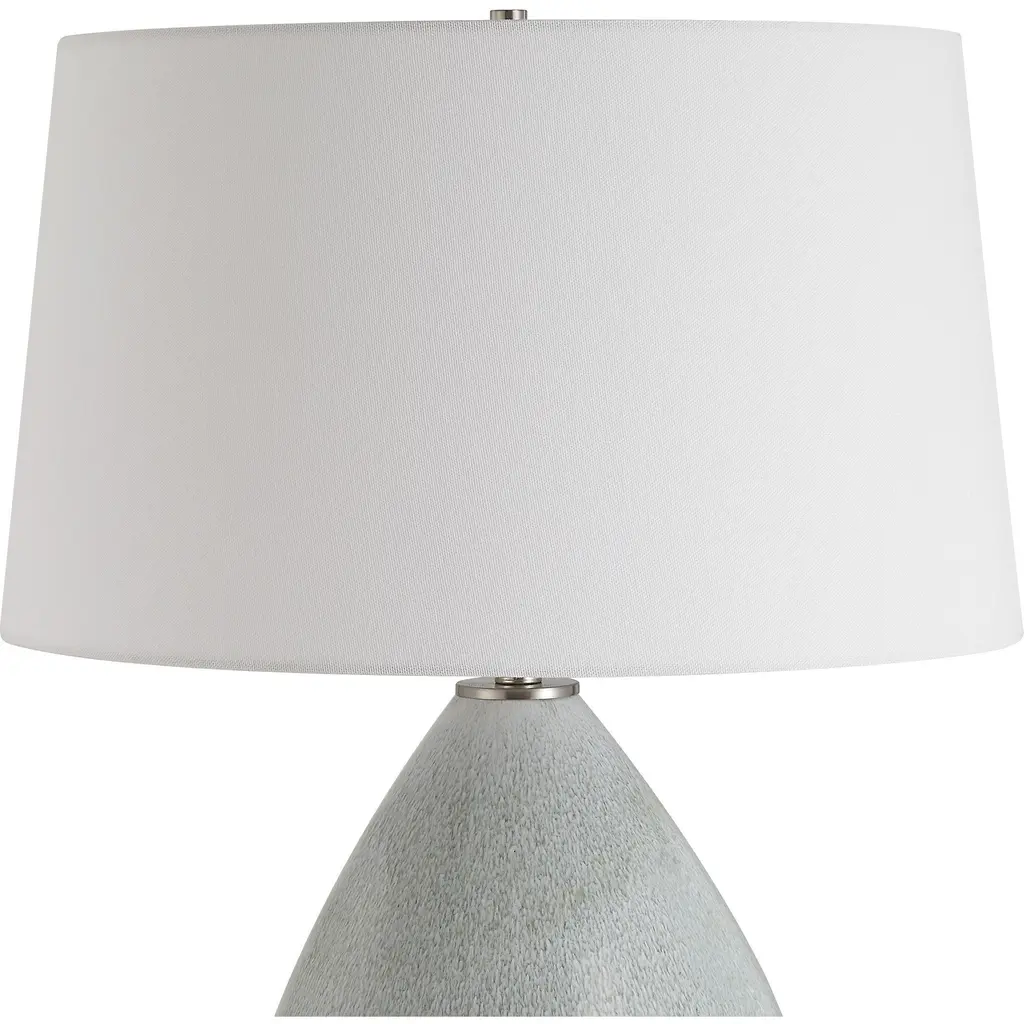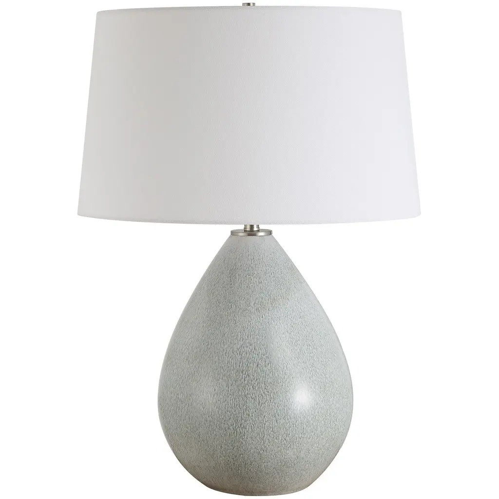 Featuring A Teardrop-shaped Ceramic Base With A Soothing Cream Background, Enhanced By A Mushroom Gray Drip Glaze That Adds A Touch Of Organic Artistry. Accented With Brushed Nickel-plated Details, The Moray Table Lamp Is A Sophisticated Addition To Any Decor. The Tapered Round Hardback Shade Is A Crisp White Linen Fabric.