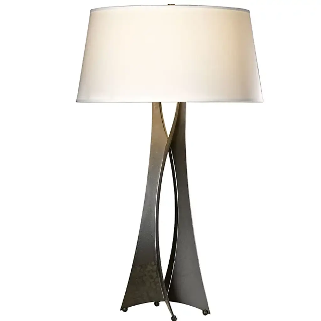 Sculptural yet natural, the Hubbardton Forge Moreau Tall Table Lamp creates a sense of airy movement despite its solid construction. A hand-forged wrought iron base boasts well-placed curves that impress the viewer with a different shape from every angle. The gently flared empire shade tops the look with understated sophistication.
