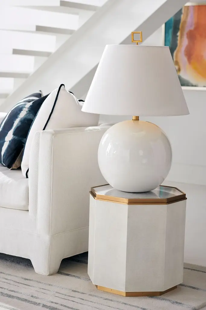 This exquisite piece features a crackle glazed porcelain design complemented by antique brass finished parts, offering a timeless and elegant aesthetic.